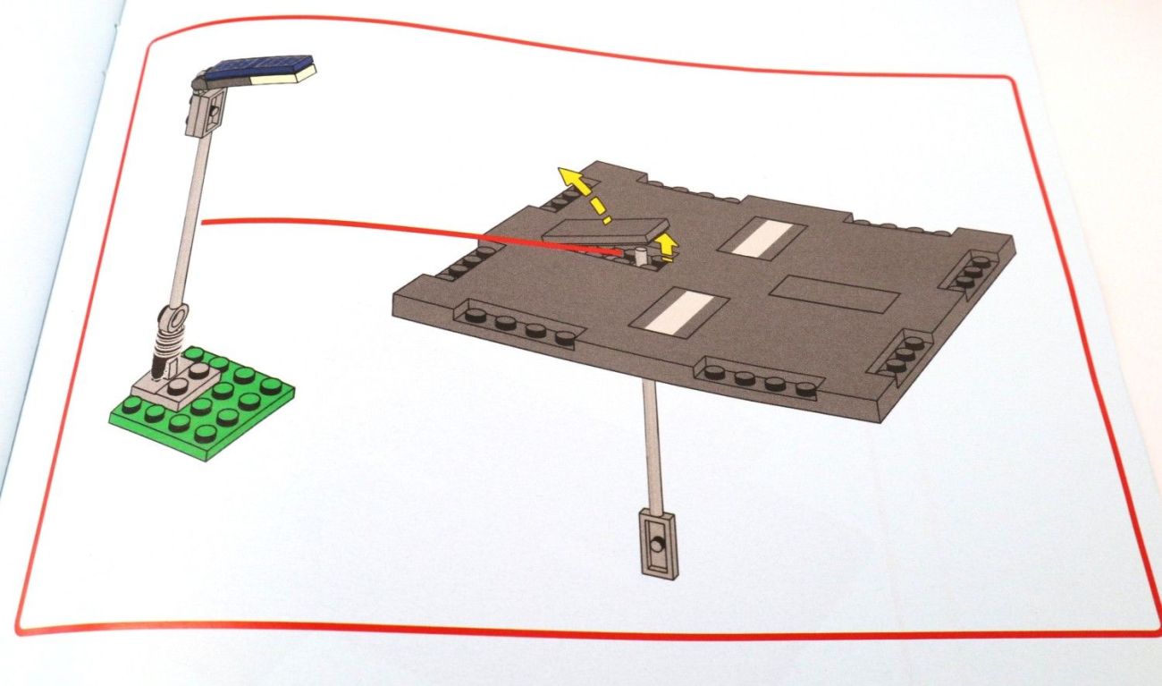 Wer sich nun fragt, wie man denn die einzelnen 2×4 Platten wie von der Fahrbahnmarkierung wieder herauszubekommen sind. Dem wird in der Bauanleitung gleich ein Hinweis gegeben. Es wird kein Steinetrenner genutzt, sondern es soll ein Teil der Straßenlaterne zum „Herausstoßen“ der Platte verwendet werden