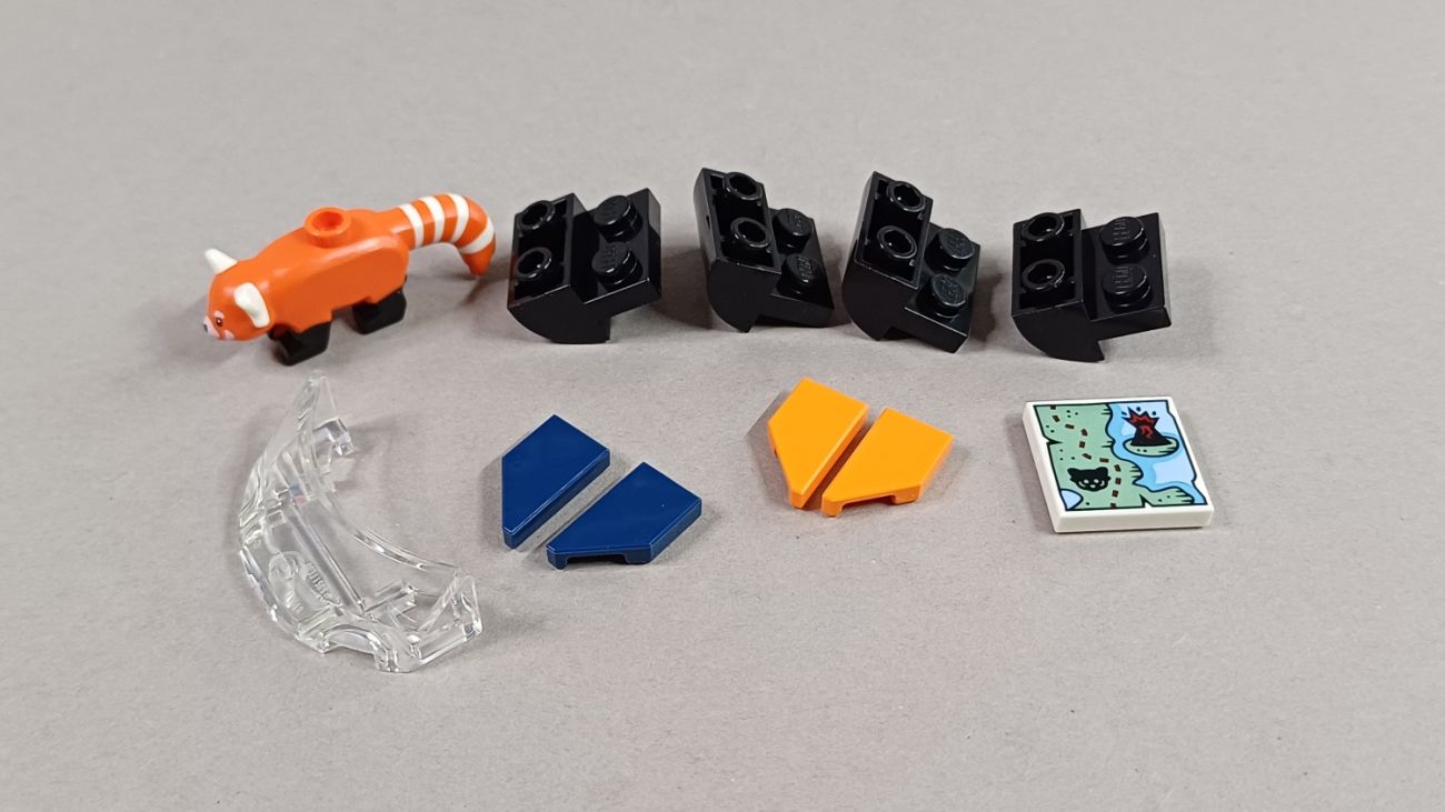 In dem 16 cm x 14 cm x 4,5 cm großen Karton haben wir zwei Tüten ohne Nummern und die kleine Anleitung. In dem Set gibt es auch einige interessante und neue Teile wie den roten Panda, die 1×2 Fliesen mit abgeschnittener Ecke oder eine exklusive Karte, welche man mit Karten aus den anderen Sets kombinieren kann.