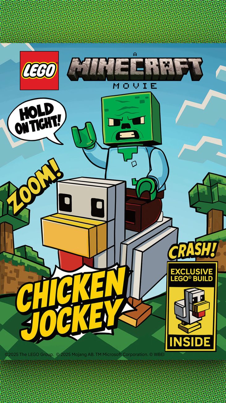 Von der Leinwand direkt in die Welt der Bausteine. Dieses Cover ist eine Hommage an den Minecraft-Film von 2025 mit explosiver Comic-Action, markigen Sprüchen und dem wilden Ritt eines unaufhaltsamen Hühnerreiters.