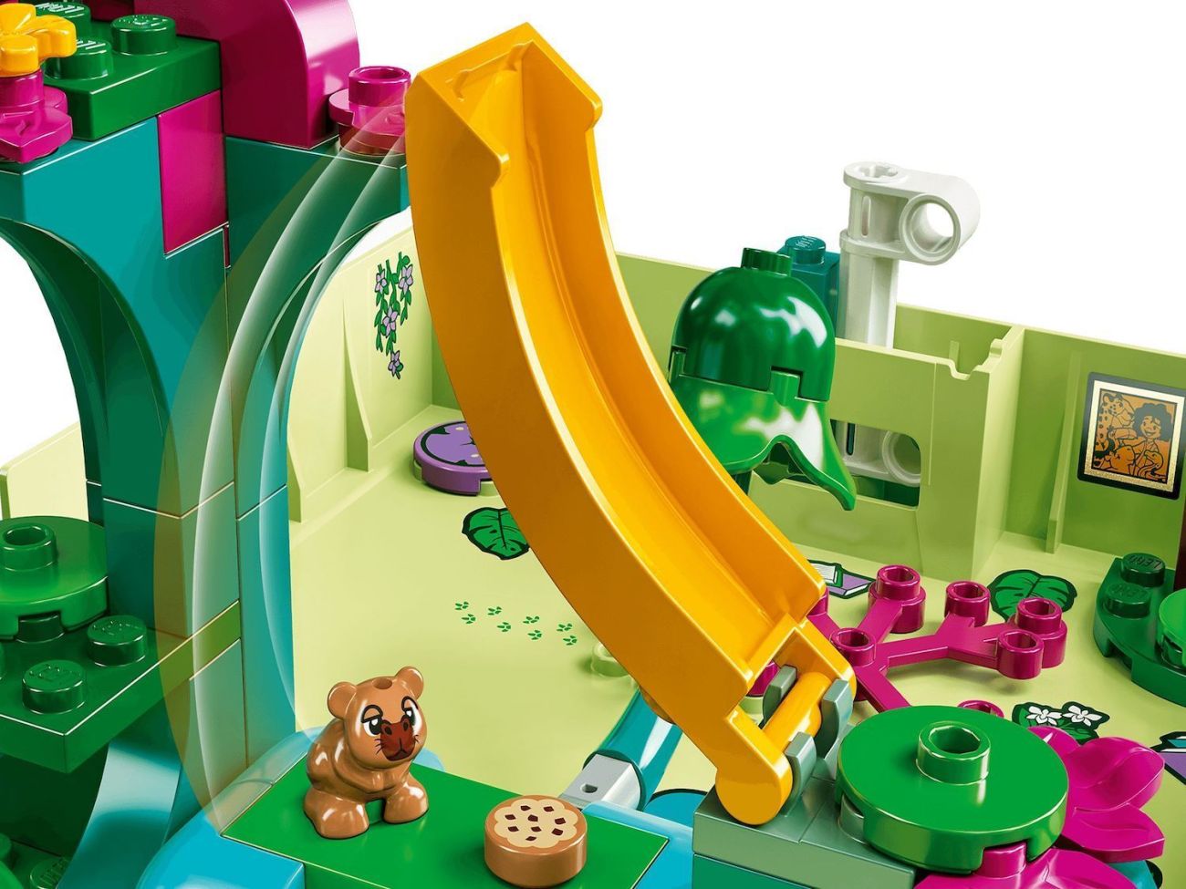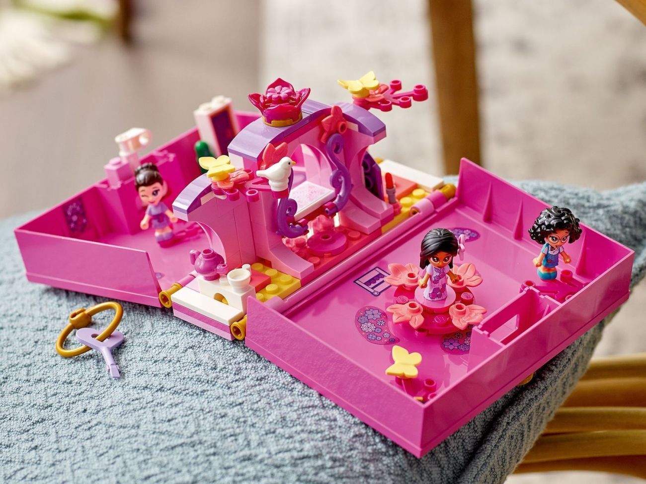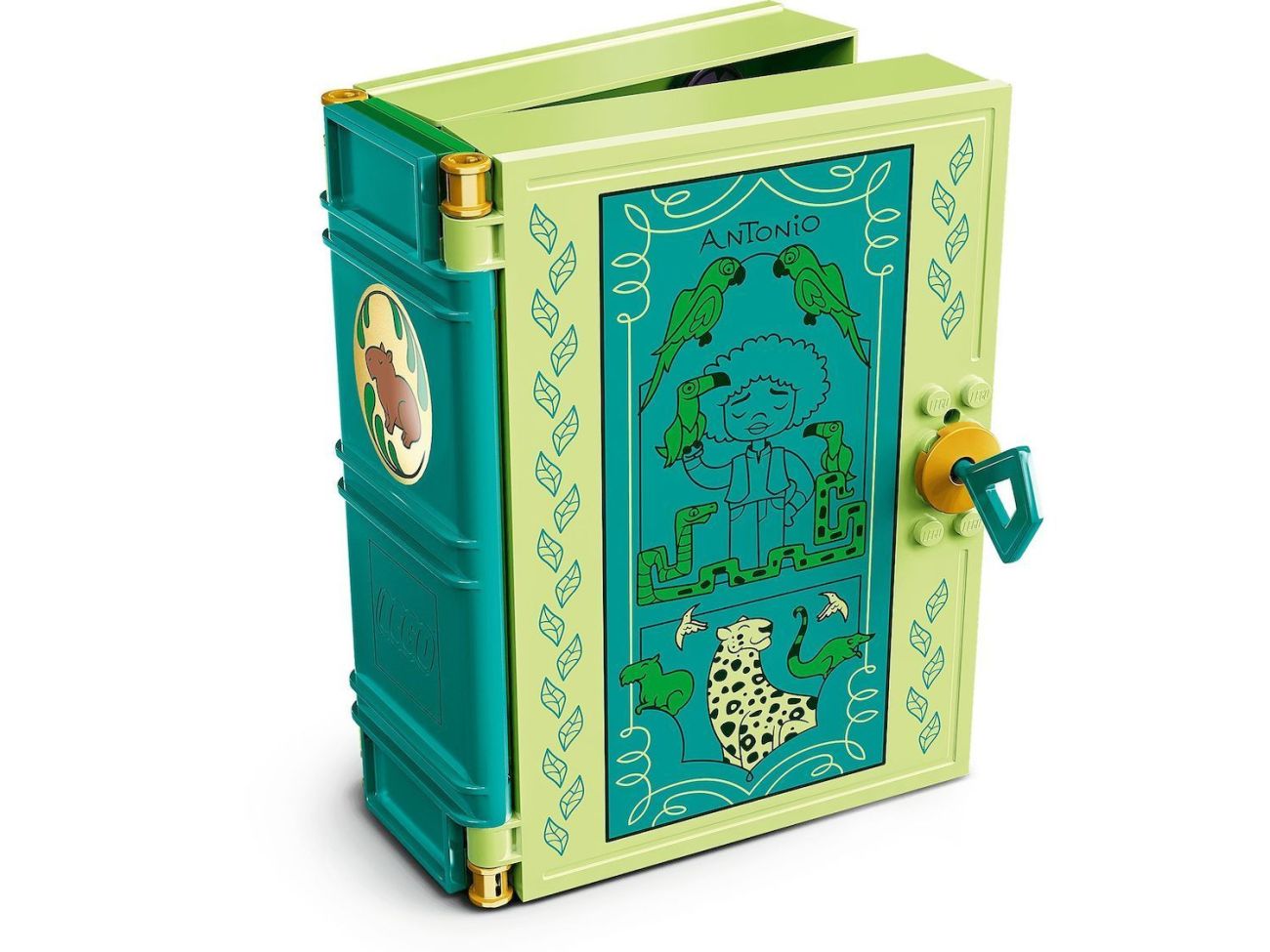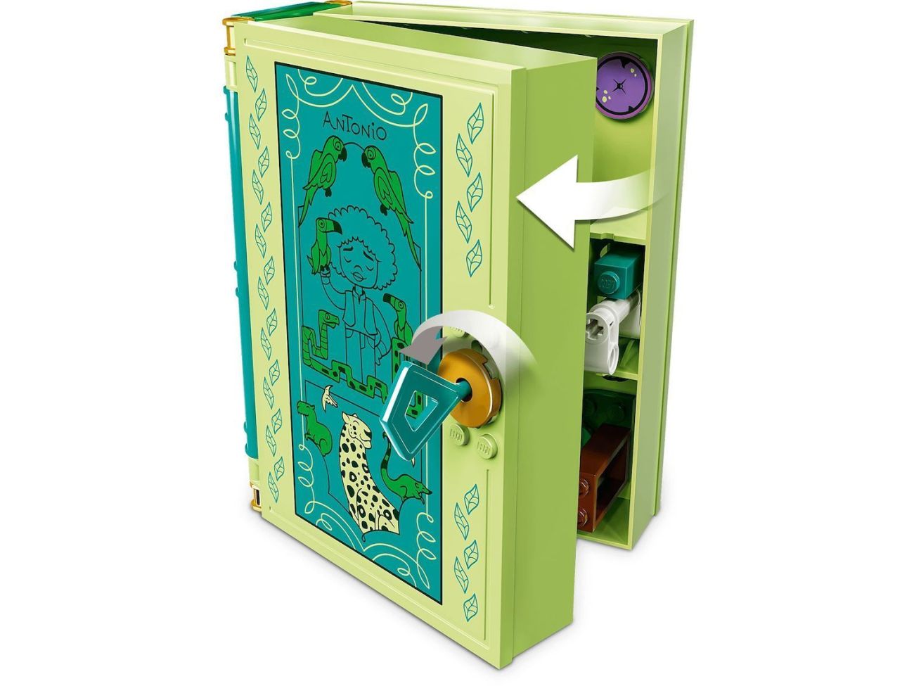 Beim ersten LEGO Disney Encanto Set handelt es sich teilemäßig um ein weiteres der Disney-Bücher. Allerdings stellt das eigentliche Buchcover dieses Mal eine grüne Tür dar, sodass sich im Inneren das Zimmer von Antonio, einem Kind der Familie befindet. Enthalten ist ein Baum, an dem sich auch eine Hängematte befindet, sowie ein Jaguar, ein Frosch, Schmetterlinge und ein Wasserschwein (neuer Druck auf dem Hamster-Mould). Antonio und Mirabel sind als Minidoll-Kinder-Figuren enthalten. Das Set besteht aus 99 Teilen und wird 19,99 Euro kosten.
