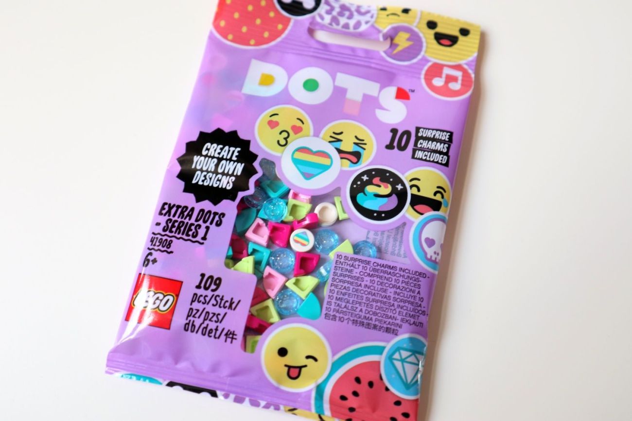 Die LEGO Dots Armbänder mit zusätzlich 32 LEGO Dots kosten laut unverbindlicher Preisempfehlung 5,99 Euro. Der Preis ist aber bereits mit Erscheinen der Dots Produkte unter fünf Euro gefallen. Wer keine eigenen Dots in seinem Sortiment hat, der kann mit dem Ergänzungsset 41908 – 109 weitere Dots zur kreativen Gestaltung der Armbänder erhalten. Dabei sind in jedem Polybag 10 „extra“ Dots enthalten. Diese sind immer weiße 1×1 Round Tiles mit einem besonderem Aufdruck. Insgesamt gibt es davon in der Serie 1 sechzehn verschiedene Dots. Diese Varianten sind zum Beispiel auf dem Werbeheft zu LEGO DOTS aufgedruckt.
