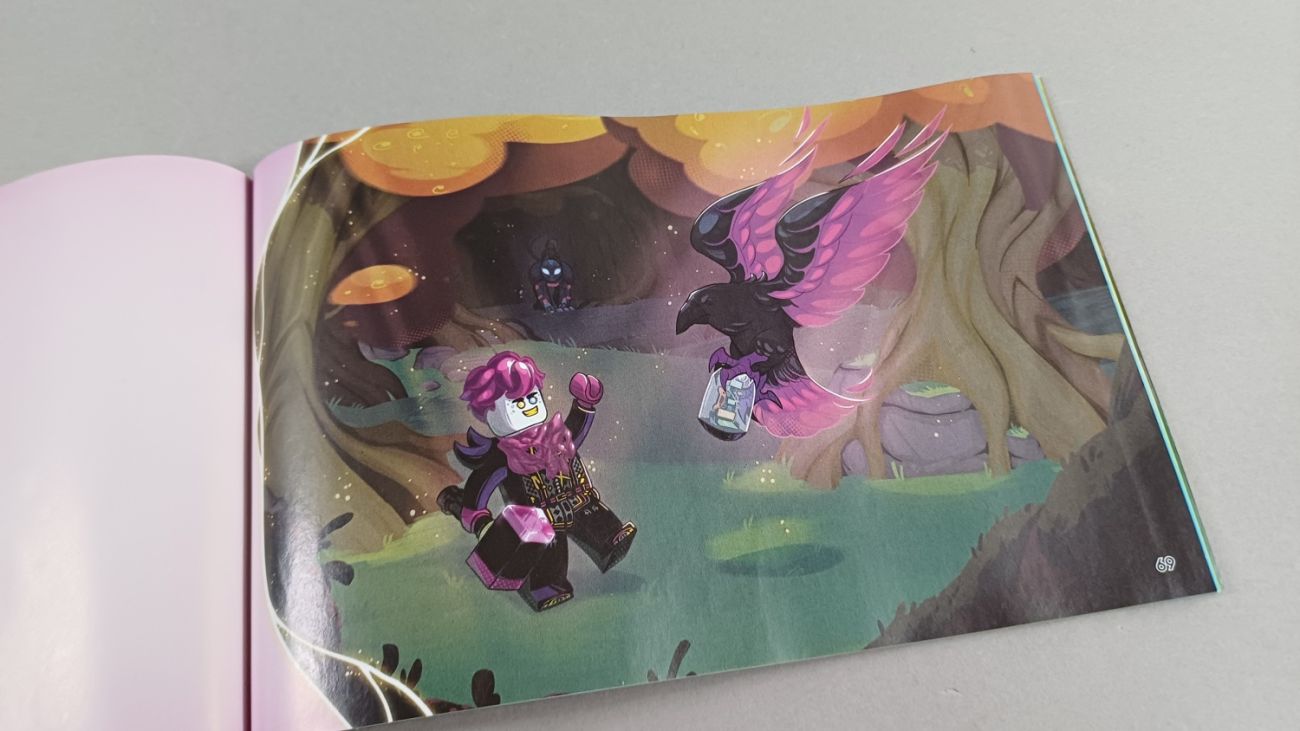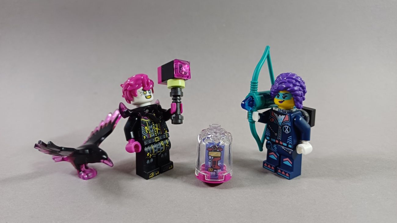 Für die 19,99 Euro erhalten wir hier zwei Figuren: Zoey in ihrem neuen Anzug und Dooper, die böse Variante von Cooper. Beide Figuren gibt es sonst nur noch in Coopers großem T-Rex für 79,99 Euro. Den Raben gibt es in jedem anderen LEGO Dreamzzz Set auch und die ganzen Welten unter dem neuen Kristall gibt es auch in allen Sets, hier gibt es nur die Gaming-Welt.