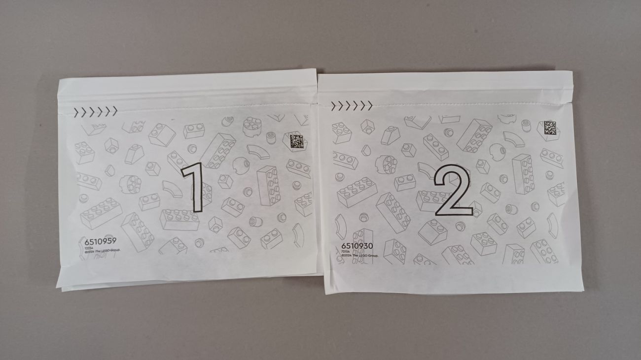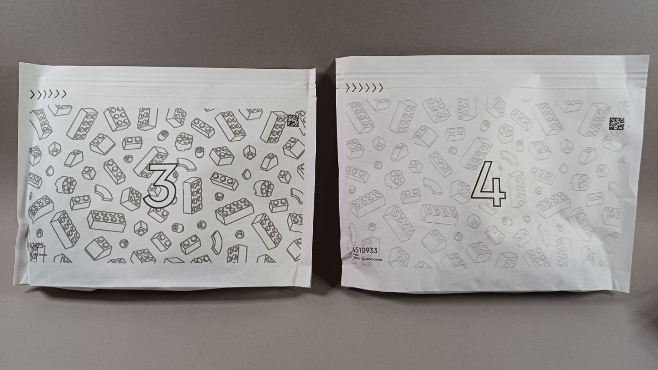 Mit den ersten beiden Tüten bauen wir tatsächlich nur das Nebenbauwerk mit dem Baum und den Kesseln. Für die Kessel wurde hier ein komplett neues Element produziert, welches man um die Knickgelenke bauen kann. Von dem Teil sind insgesamt vier enthalten, da man pro Kessel zwei braucht. Die Nimmerhexe und Matteo sind ebenfalls in den ersten beiden Tüten, während die drei anderen Minifiguren erst später kommen.