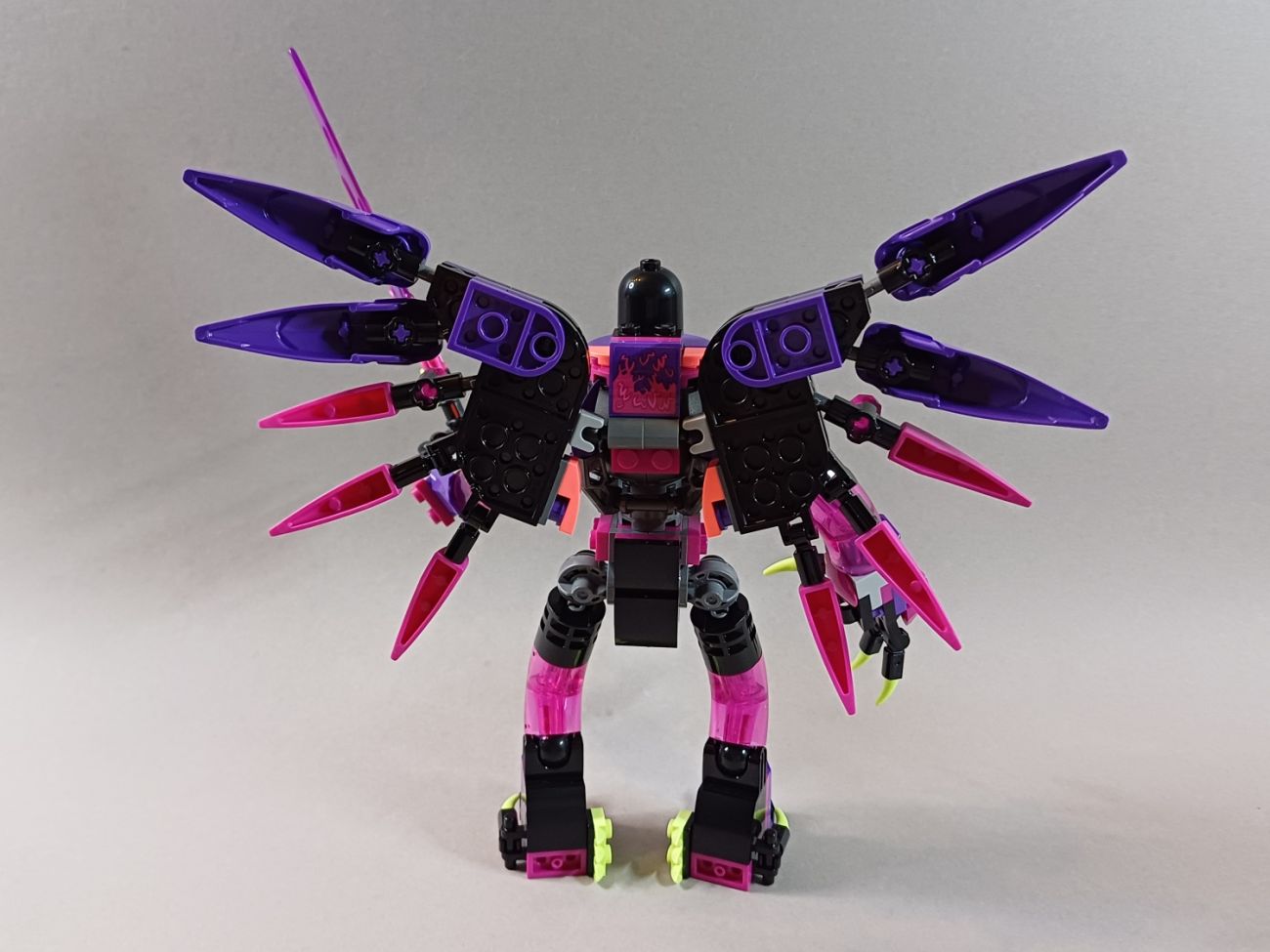 Der große Doom-Blob Mech ist ebenfalls ein besonderer Teil aus der Serie und ist mit 21 cm das höchste Modell. Seine Flügelspannweite beträgt 17 cm und man kann aus den vielen übrigen Teilen noch einen kleinen 13 cm langen Wolf bauen, welcher wie der Große, einen Sitzplatz für eine Minifigur hat. Der große Doom-Blob passt perfekt zu der Madteo Minifigur, welche das böse Gegenstück zu Matteo und Z-Blob sind.