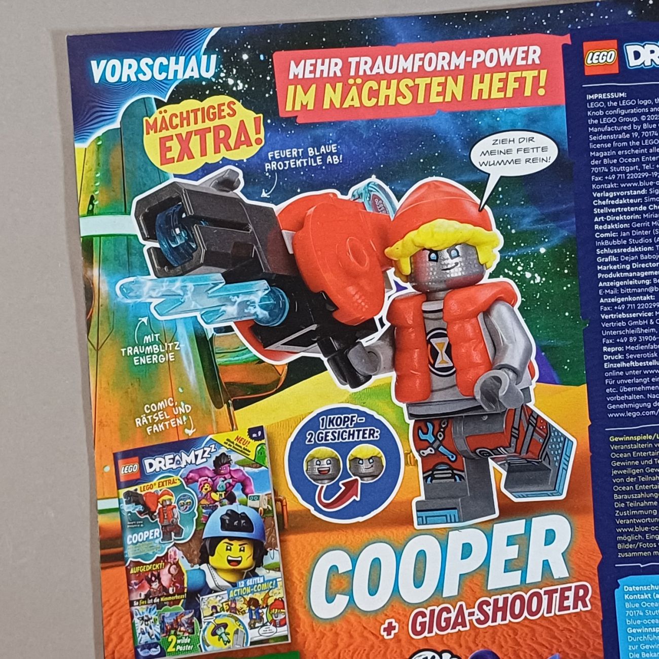 Im kommenden LEGO Dreamzzz Magazin ist meiner Meinung nach eines der enttäuschendsten Extras bisher, auch wenn die Figur eigentlich cool ist. Wir bekommen erst am 25.04.2025 das LEGO Dreamzzz Magazin 9 mit einer Cooper Minifigur. Genau die Cooper Minifigur, die wir auch schon im Ausgabe 7 bekommen haben!