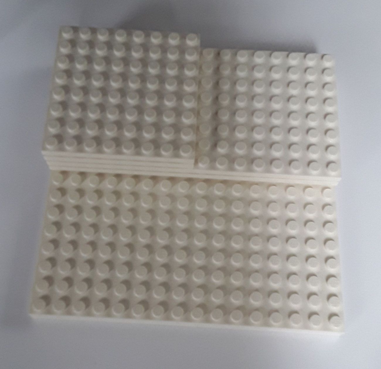 Außerdem erwähnenswert sind die zwei weißen 16×16 Platten, die zwei weißen 8×16 Platten und die zwei 8×8 Platten, die als Grundlage für die meisten Modelle in dem Set dienen.