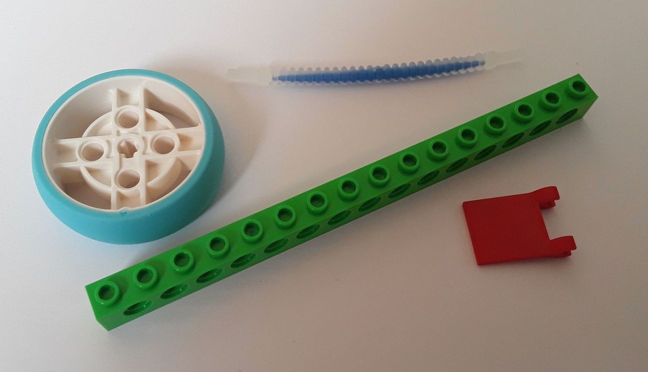 Dieses Set enthält eine ganze Reihe von exklusiven und seltenen Elementen. Den 1×16 Technic Brick in Bright Green gibt es bisher nur in diesem Set. Dazu kommt die Flagge mit zwei Halterungen in Rot, der flexible ribbed Hose 8 mm mit blauer Füllung und das kleine Rad. Durch den festen Gummibezug des Rades wird der Schlupf verringert, wodurch beispielsweise ein SPIKE Essential Fahrzeug genauer steuern kann. Natürlich sind die meisten elektronischen Komponenten auch exklusiv, aber die schauen wir uns erst im nächsten Abschnitt an.