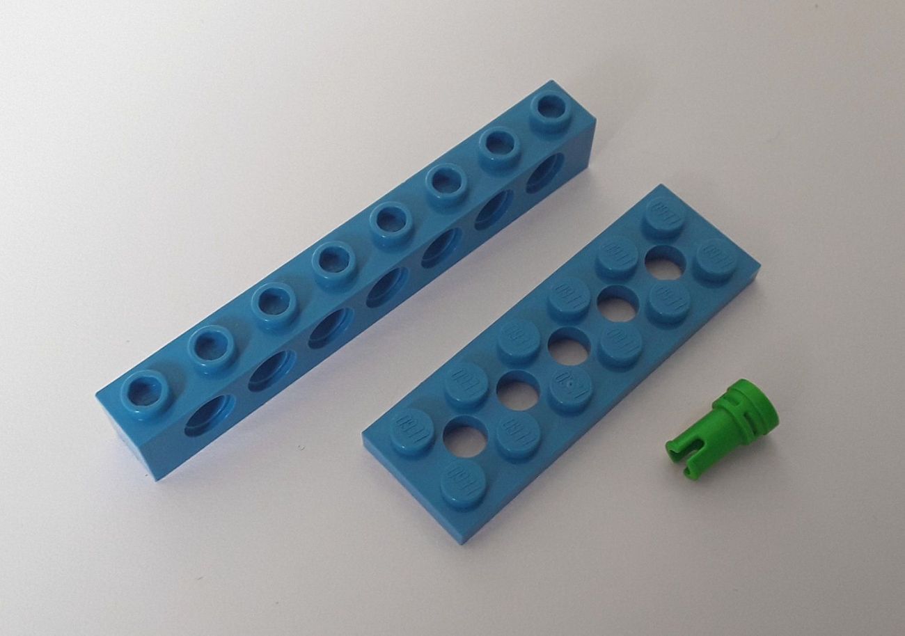Den 1×8 Technic Brick und die 2×6 Technic Plate, beide in Dark Azure, gab es in der Farbe bisher nur in LEGO Education BriQ Motion Essential. Ein spannendes neues Teil ist außerdem der Technic Pin mit Anti-Stud, der ansonsten nur in einem Education-Set und in dem Volkswagen T2 Camper enthalten war. Der Pin ermöglicht eine relativ einfache Befestigung von Technic-Elementen auf normalen System-Noppen. Da die elektronischen Komponenten alle nur Technic-Baumöglichkeiten bieten, aber die meisten Steine des Sets Systemsteine sind, werden die Pins sehr häufig genutzt.