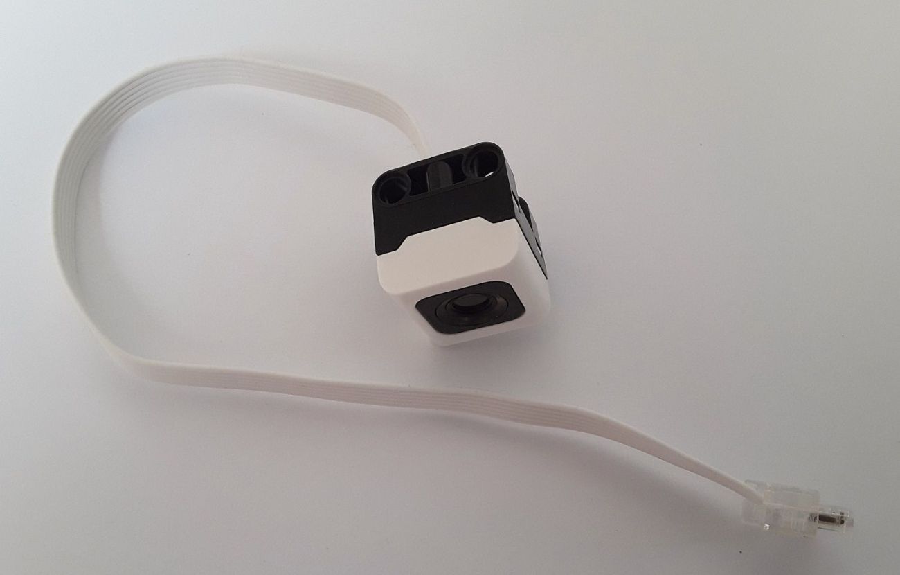Bald zwei Jahre gibt es den Technic Farbsensor. Er kann neben Farben auch die Helligkeit der Umgebung messen und hat einen weißen LED-Ring um die Linse, der in drei Segmente aufgeteilt werden kann. Letzteres wird aber nicht von der SPIKE Essential-Software unterstützt. Die optimale Entfernung zur Farberkennung zwischen Sensor und Objekt beträgt 16 mm.