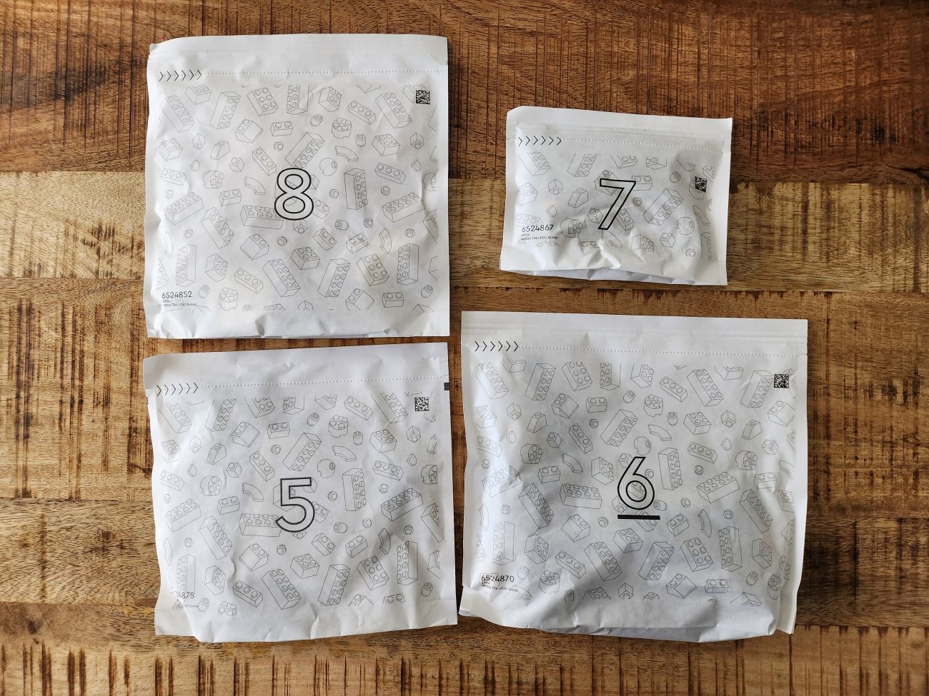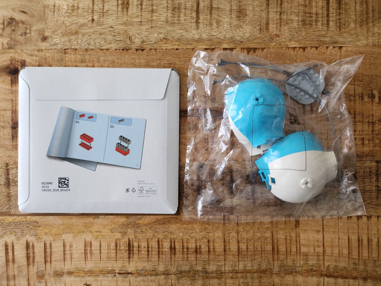 Die Box ist im neueren „Clamshell“ Design produziert, bedeutet nach lösen der Klebesiegel kann der Deckel abgenommen werden und wir haben direkten Zugriff auf alle Beutel und die Anleitung. Insgesamt haben wir es hier mit 8 nummerierten Papierbeuteln zu tun, in einem Plastikbeutel verstecken sich die Elemente für die Konstruktion des Ballons, die Anleitung kommt in einem Pappschuber. Positiv hervorzuheben ist die Tatsache, dass sich in den Papierbeuteln nur noch ein einziger kleiner Plastikbeutel versteckt hat, beim McLaren P1 waren es noch zahlreiche.