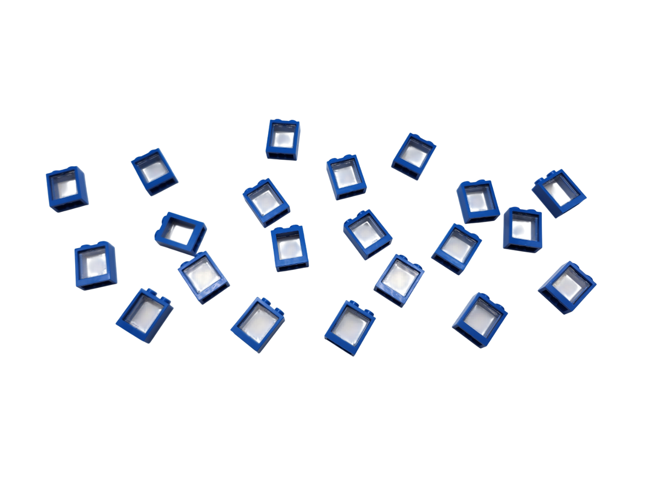 Innerhalb der nächsten Schritte motorisieren wir unser Fahrzeug noch und es werden noch einige Scheinwerfer und andere Leuchten angebracht. Der Motor besteht hierbei unspektakulär aus aus einer 2×4 Plate mit Grills und vier 1×1 Rundfliesen mit Pins.. In Tüte 5 begegnen uns dann insgesamt 21 kleine blaue Fenster samt Scheiben, diese werden dann sinngemäß auf beiden Seiten angebracht und unser Bus nähert sich auch in seiner Optik langsam seiner Endform an. Nachdem die Fenster montiert sind werden an allen drei Seiten noch die „Ausgangstüren“ samt großen Fenstern montiert, die Abenteurer müssen den Bus ja auch zeitig verlassen können.