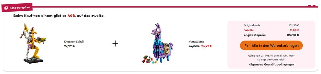 Die Aktion gilt vom 21. bis zum 27. Oktober 2025 – und ist derzeit leider nur auf diese beiden Sets aus der LEGO Fortnite Themenreihe beschränkt.