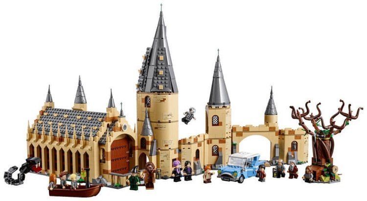 Klar, Set 75953 hätte auch nur das Auto und die Weide (hätte größer ausfallen können oder die Höhle darunter) beinhalten können. Nun ist halt eine Stück Hogwarts dabei, und damit wächts das Schloss auf die ungefähre Größe des Vorgängers.