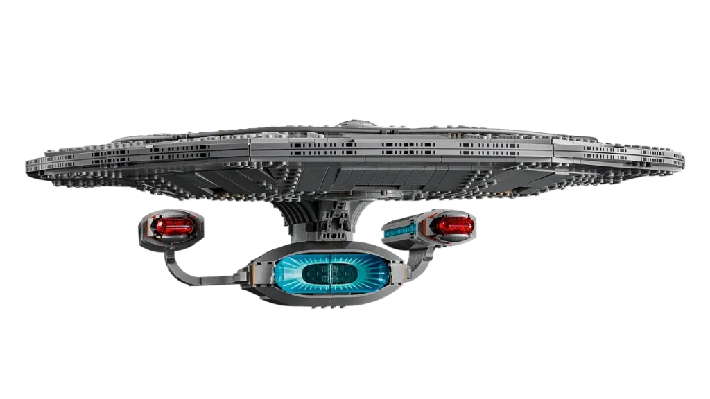 Interessant, wie sehr sich diese Variante von der Bluebrixx-Variante unterscheidet, bei der Bluebrixx 1701D war die Lange mit 40cm und die Breite mit 55,4cm angegeben. somit sogar 20cm kürzer, als die Lego-Variante. zudem, finde ich, hat die Lego-Variante einen schöneren Schwung in die Untertassen-Sektion bekommen. Wenn jetzt nur die Aufkleber nicht wären, wäre das vielleicht wirklich ein besseres Set, als das von Bluebrixx.