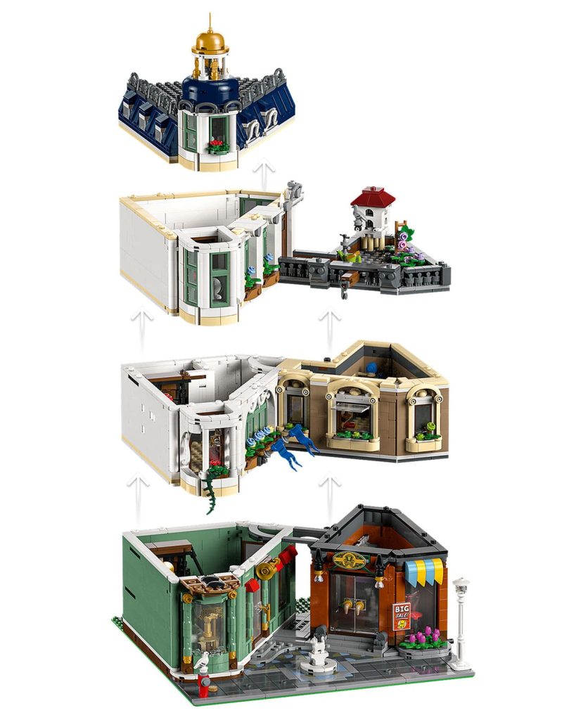 Das 21. Modular kommt mit 2 verschiedenen Geschäften, einem Musikladen samt zahlreicher Musikinstrumente auf 2 Stockwerken verteilt, sowie einem Möbelgeschäft, beides durch eine Art Gasse voneinander getrennt. Im Dachgeschoss befindet sich weiterhin noch eine möblierte Wohnung inklusive Badezimmer und im Außenbereich einem Dachgarten. Vor den eigentlichen Gebäuden befindet sich noch eine Art Plaza samt Skulptur. Insgesamt 3.456 Teile dürfen in dem Set verbaut werden.