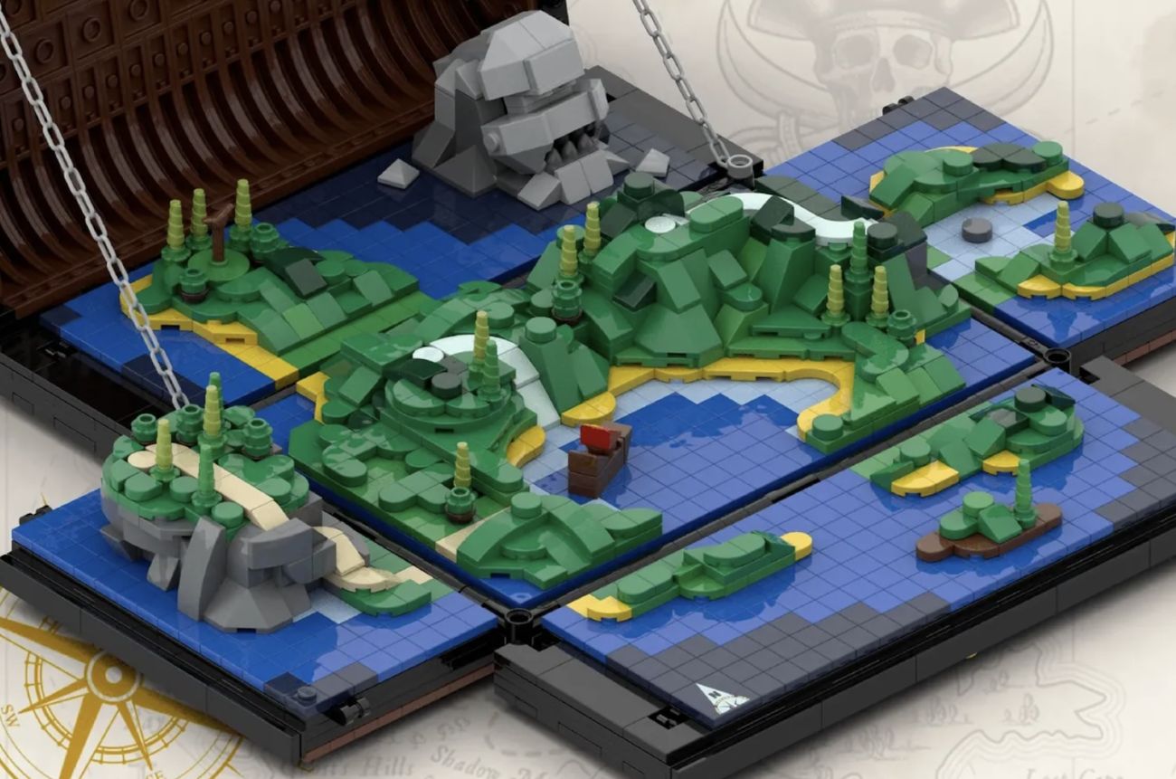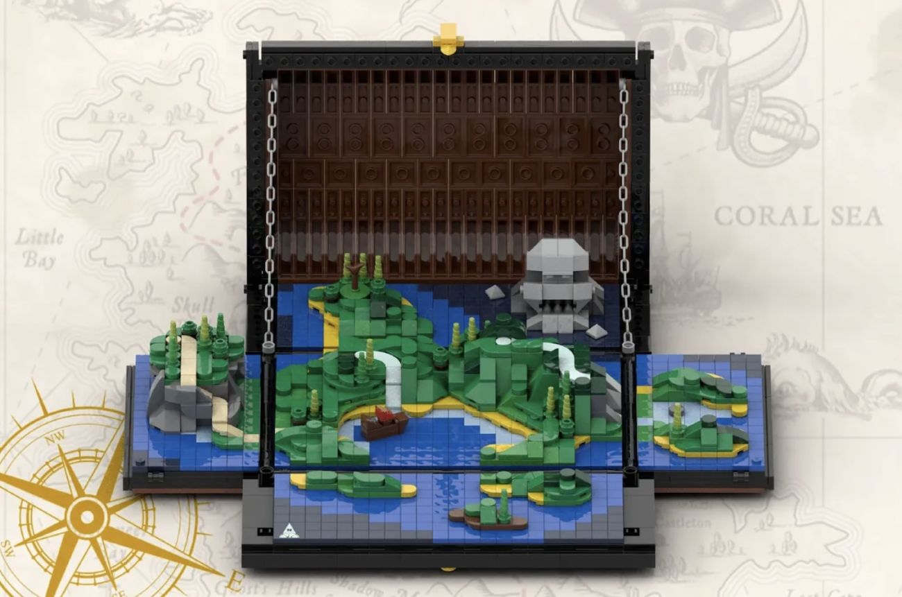 Die Schatztruhe lässt sich an allen vier Seiten öffnen, um eine vollständig eigenständige Schatzkarte freizulegen. Das Design der Schatztruhe selbst ist von der klassischen LEGO-Schatztruhe mit funktionierendem Verschluss an der Vorderseite inspiriert. Die Schatzkarte enthält Wasserfälle, Buchten, eine Totenkopfinsel, Bäume, Berge, ein Piratenschiff – und zwei Orte, an denen Schätze und Juwelen gefunden werden können.
