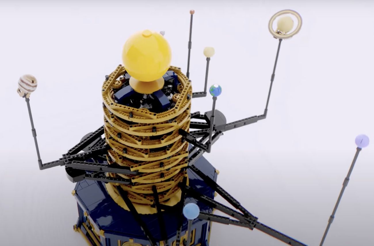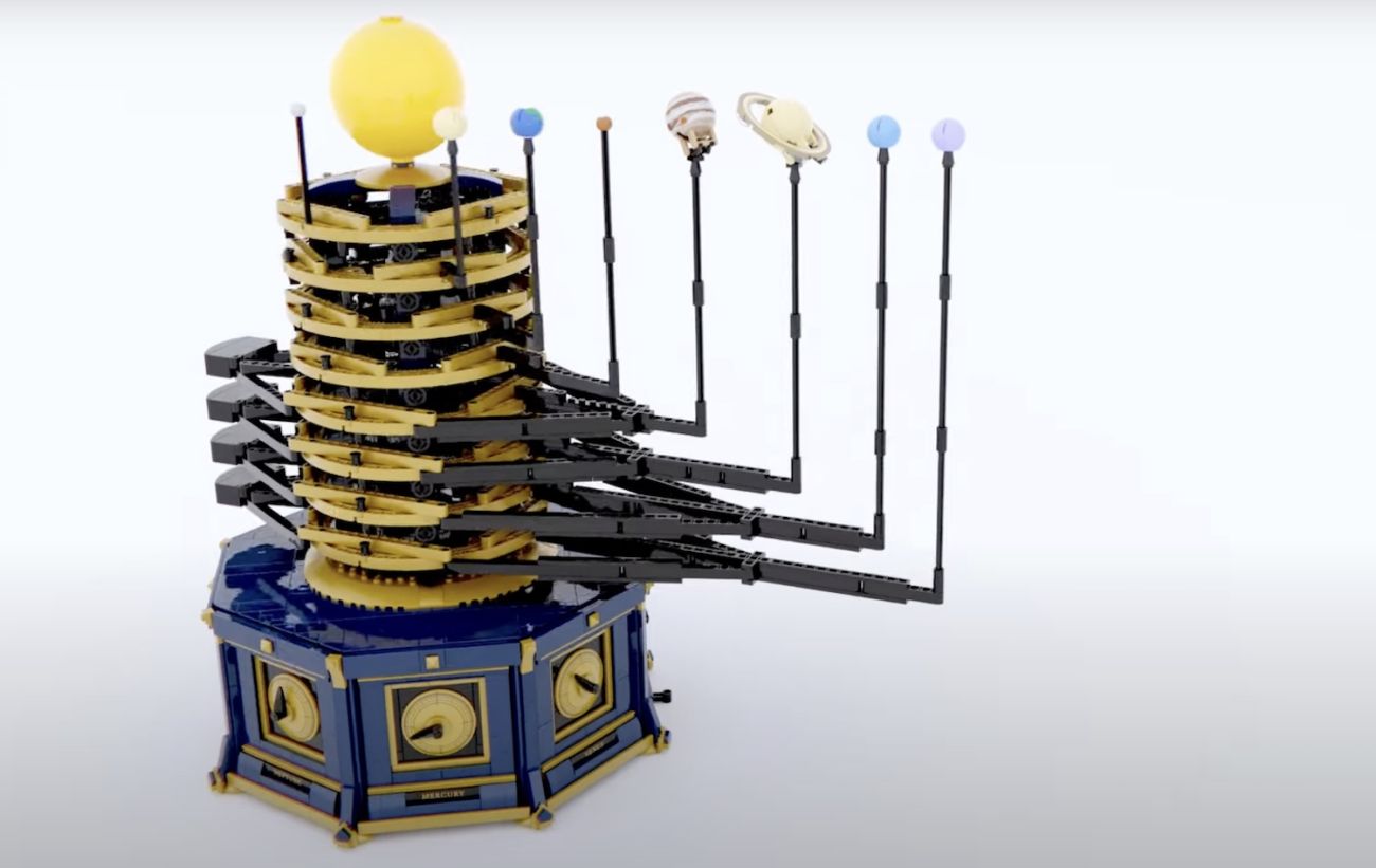 Mechanische Modelle des Sonnensystems oder Planeten gibt es seit dem frühen 18. Jahrhundert und nun auch aus LEGO Steinen. Von den Streifen des Jupiter bis zu den majestätischen Ringen des Saturn wurde jeder Planet nachgebildet, um seine relative Größe und seine ikonischen Merkmale aufzuzeigen. Das Modell ist nicht nur in den äußerlichen Merkmalen identisch, auch die relativen Umlaufzeiten jeder Planeten werden mit einer Genauigkeit von 99,8% eingehalten. Das „Jahr“ der Planeten wird außerdem durch die acht Zifferblätter im stilvollen achteckigen Sockel dargestellt. Der Motor und ein Batteriekasten befinden sich im Sockel des Modells.