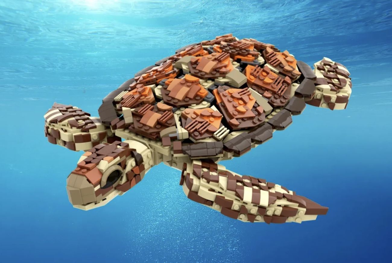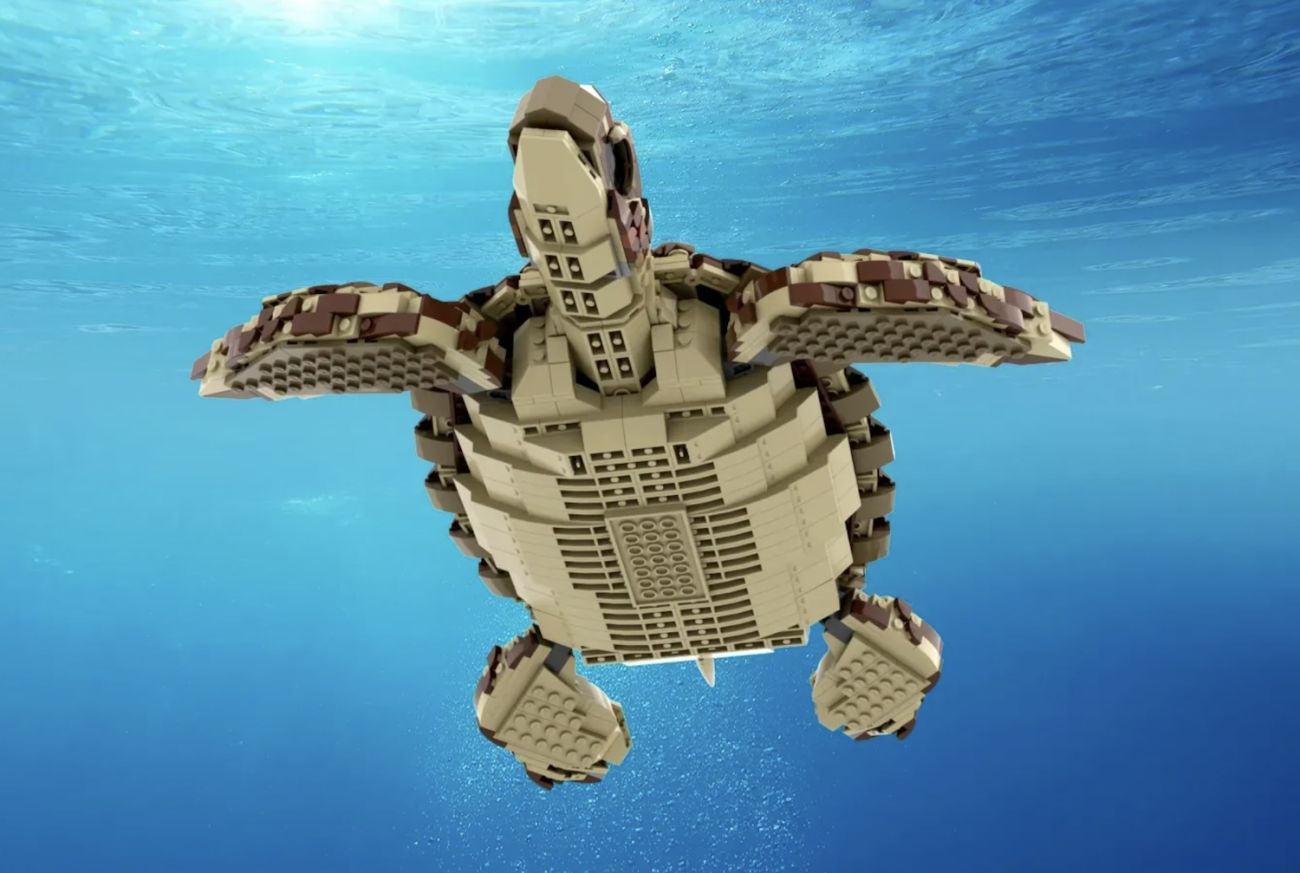 Legotruman schickt seinen 3. Entwurf in die aktuelle Reviewphase: Der Bau der Meeresschildkröte ist so konzipiert, dass es das realistische Aussehen dieser erstaunlichen Kreaturen einfängt. Die Anzahl der Rillen auf dem Schildkrötenpanzer, ihre Formen und Farbmuster orientieren sich alle an der realen Gestalt in Braun- und Orangetönen. Ebenso wurden die Schuppenmuster auf dem Kopf und den Flossen in den akkuraten Brauntönen gehalten. Die LEGO Schildkröte verfügt außerdem über einen beweglichen Kopf und Flossen, die in verschiedene Schwimmpositionen gebracht werden können.