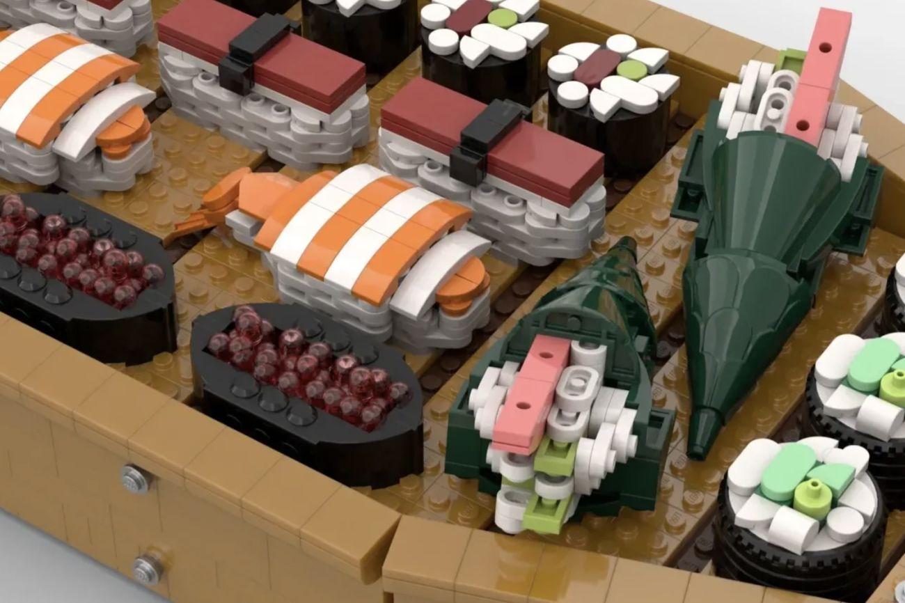 Das Sushi Boot kommt mit zwei Essstäbchen und einer großen Auswahl an beliebten Sushi Sorten sowie Wasabi und Soja Sauce. Dieses LEGO Modell ist maßstabsgetreu und basiert auf den Maßen eines echten Sushi-Boots. Es hat eine Länge von etwa 28 cm. DISCLAIMER- bitte nicht das LEGO Sushi essen, auch wenn es noch so appetitlich aussieht!