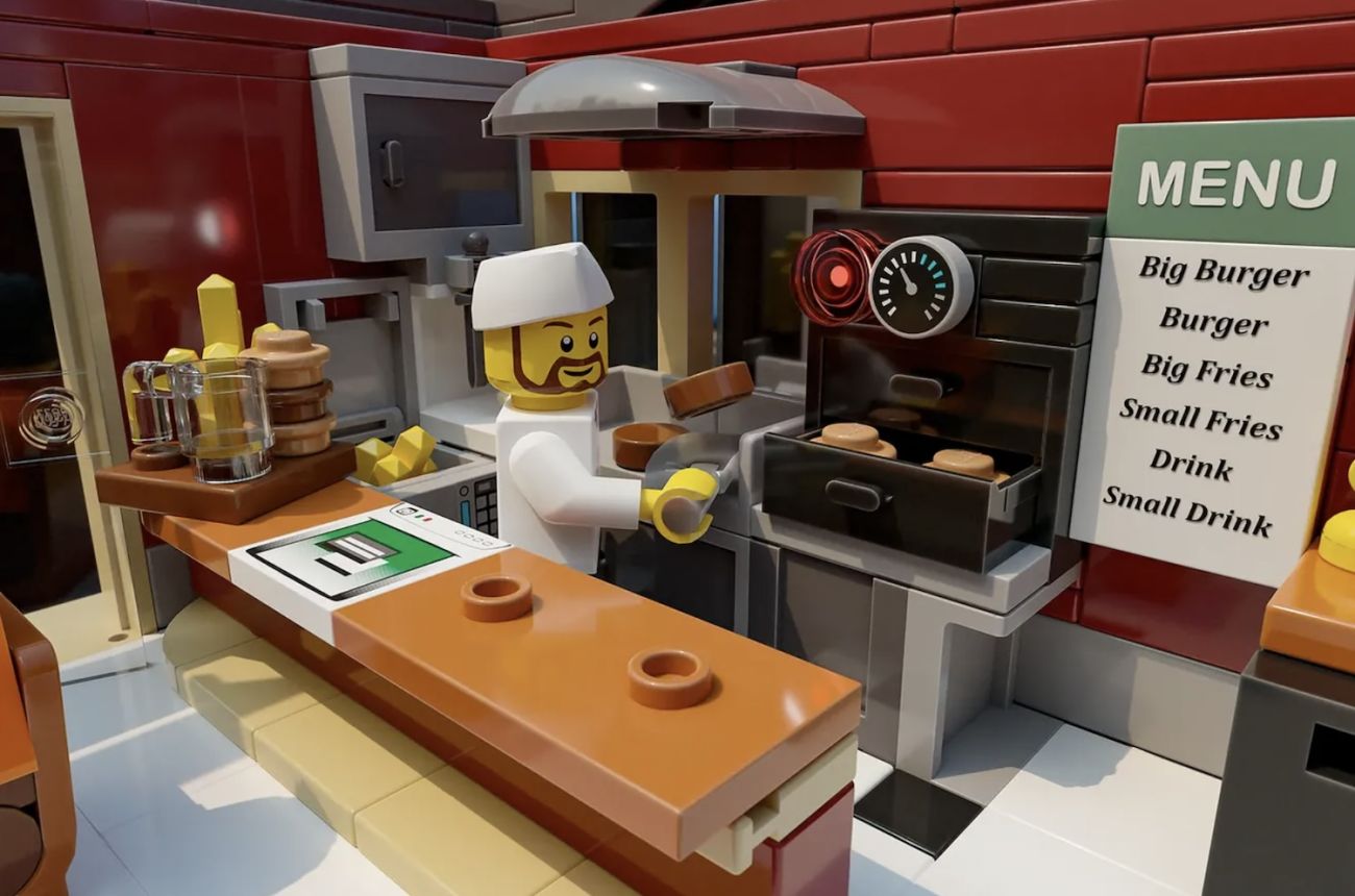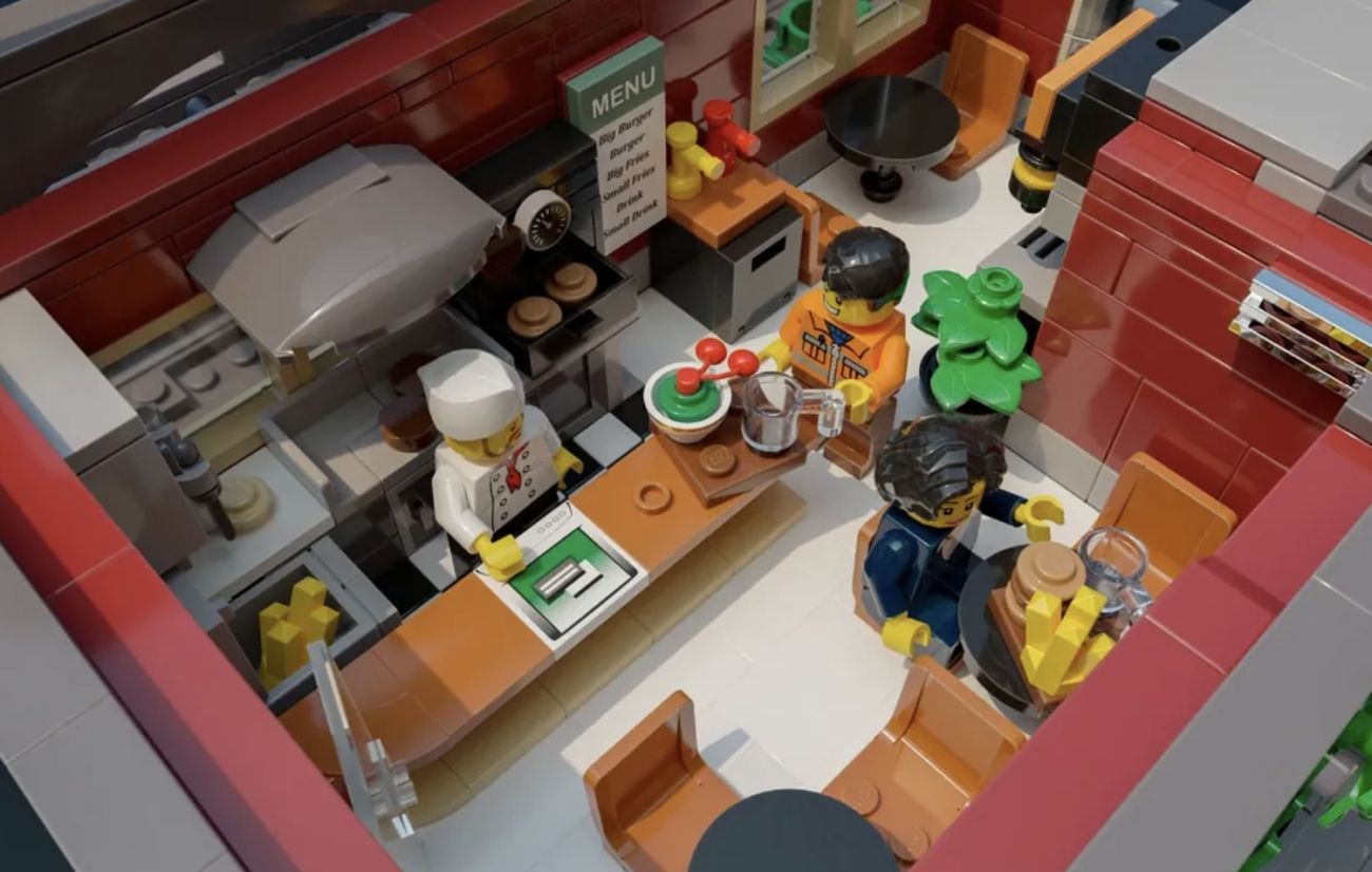 Das Gebäude gefällt mir tatsächlich richtig gut. Vor allem die unterschiedlichen Ebenen mit den vielen Details könnten eine tolle Ergänzung für jede LEGO Stadt sein. Aber wie wir alle wissen, schaffen es klassische modulare Gebäude bisher nicht realisiert zu werden, weshalb ich Burger City leider keine Chance zur Produktionsfreigabe zuschreiben kann.