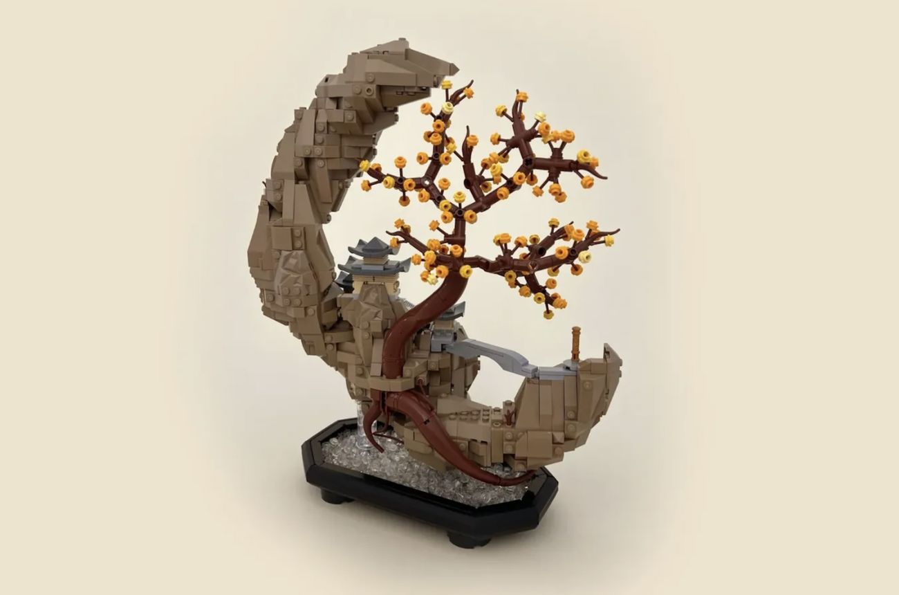 Ich musste direkt an den Moon Palace Entwurf denken, der trotz unterschiedlicher Farbgebung und Basis eine gewisse Ähnlichkeit zu diesem Modell aufweist. Der Entwurf erinnert außerdem auch an 10281Bonsai-Baum oder dem 10315 Garten der Stille. Ich denke, dass das Modell daher kaum Chancen haben dürfte, realisiert zu werden