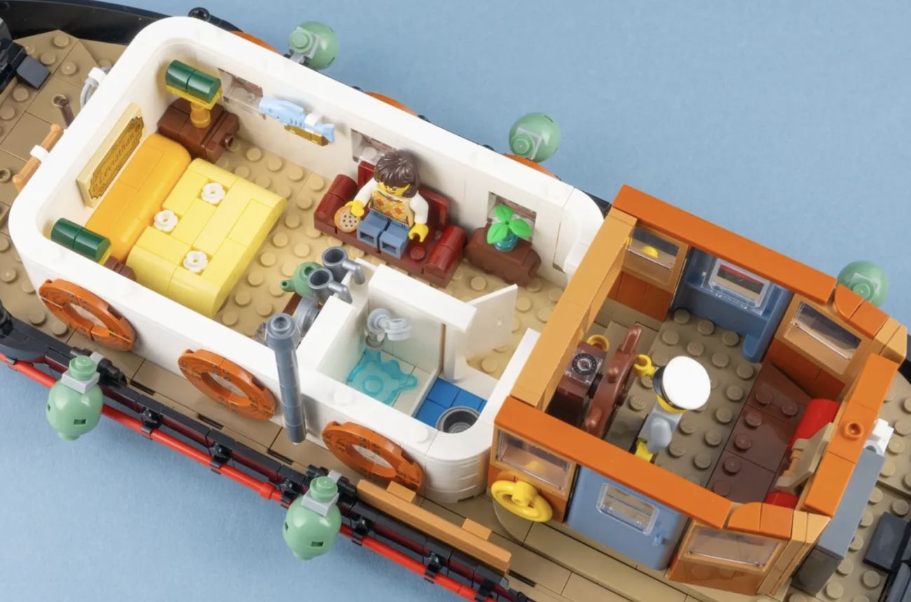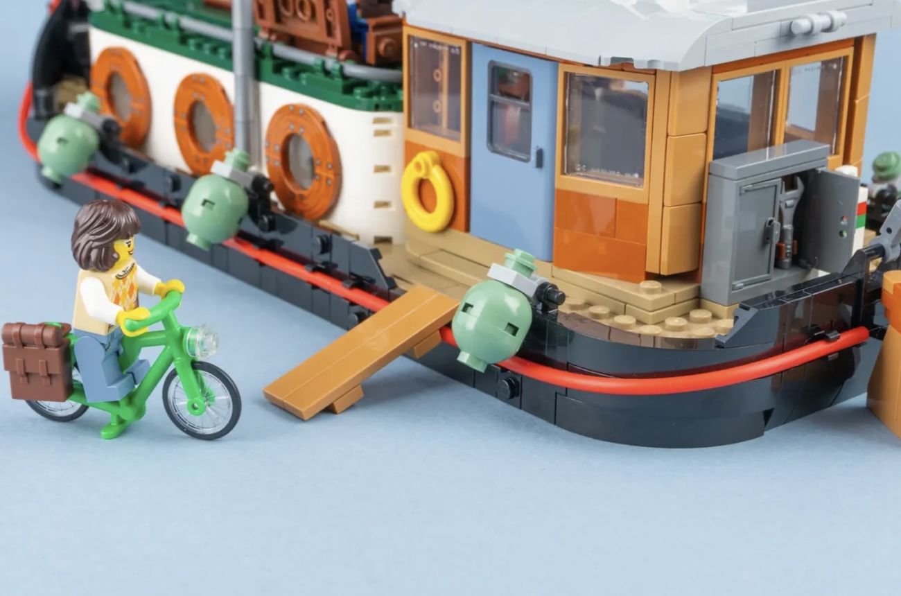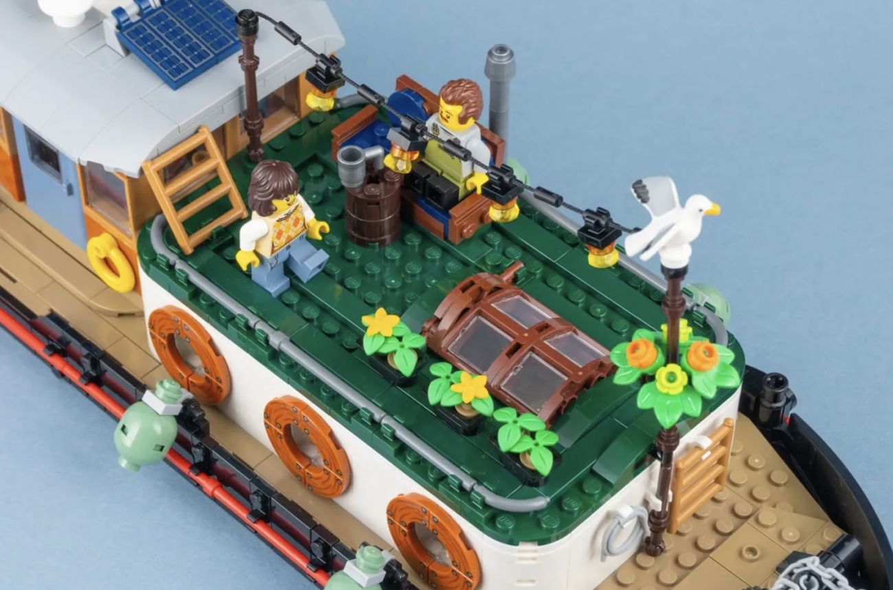 Inspiriert von den Hausbooten in Amsterdam zeigt das LEGO Hausboot viele Details und ein vollständig ausgebautes Modell. Das Schiff lässt sich öffnen, um das Innere zu sehen. Im Rumpf des Schiffes befinden sich ein rotes Sofa, Nachttische und ein Bett für zwei Personen direkt unter dem Dachfenster mit Blick auf die Sterne. In der Küche befindet sich ein Ofen, ein Herd und etwas holländischer Käse.