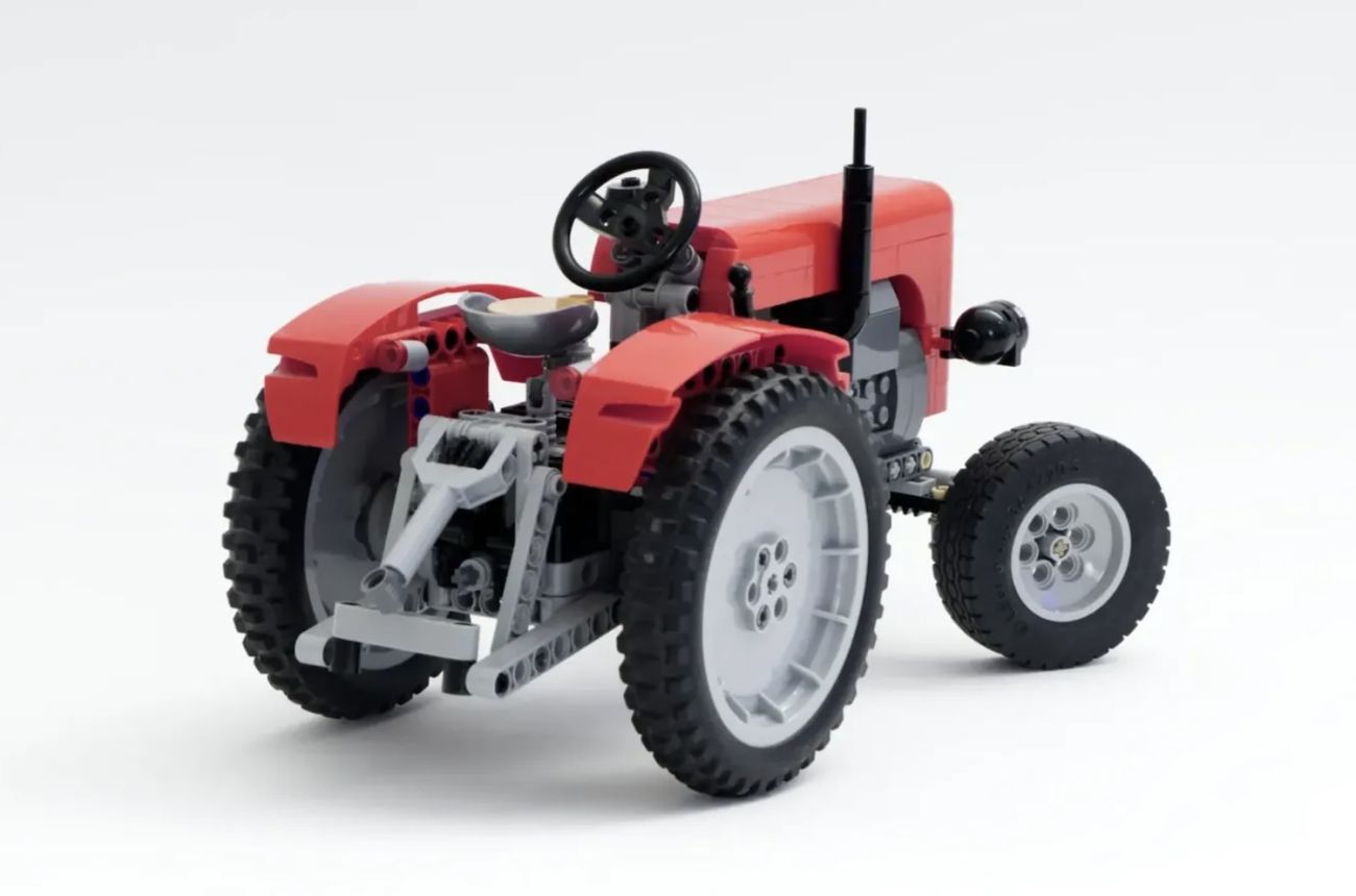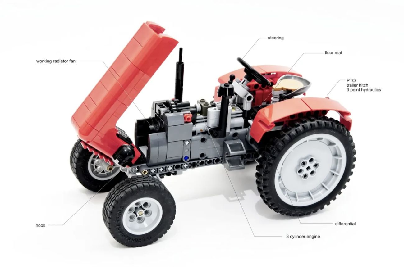 Das Modell zeigt einen typischen Traktor aus den 1950er Jahren. Hierbei wurde versucht eine Maschine zu entwerfen, die typisch für die Zeit um die 1950er Jahre ist, da sie die charakteristischste Form für einen Traktor ist. Es wurde sich aber an keinem bestimmten Modell orientiert. Die Art Traktoren war aber auf der ganzen Welt im Einsatz und sind heute beliebte Oldtimer-Modelle. Der LEGO Traktor verfügt über einen 3-Zylinder-Motor, eine Vorderradlenkung und einem funktionierenden Kühlventilator. Außerdem gehören auch weitere Teile, wie Mähbalken, Heuwender sowie ein 2-Seiten-Kippanhänger mit Heuballen dazu.