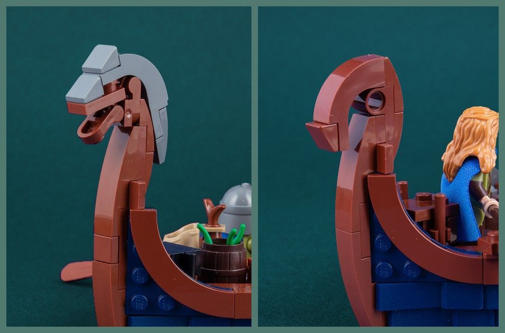 Sein Ziel, eine historisch genaue Nachbildung eines Wikingerschiffs zu bauen, ist ihm aus unserer Sicht schon mal exzellent gelungen: Der meisterliche Drachenkopf hätte auf den LEGO-Weltmeeren jeden in Angst und Schrecken versetzt. Erstaunlich, wie Jonas ganz ohne den Einsatz großer klobiger Teile die Rundungen hinbekommen hat, die dem LEGO Ideas Viking Longship eine dynamische und elegante Optik verleihen. Noch nie waren die Wikinger mit so viel Stil unterwegs!