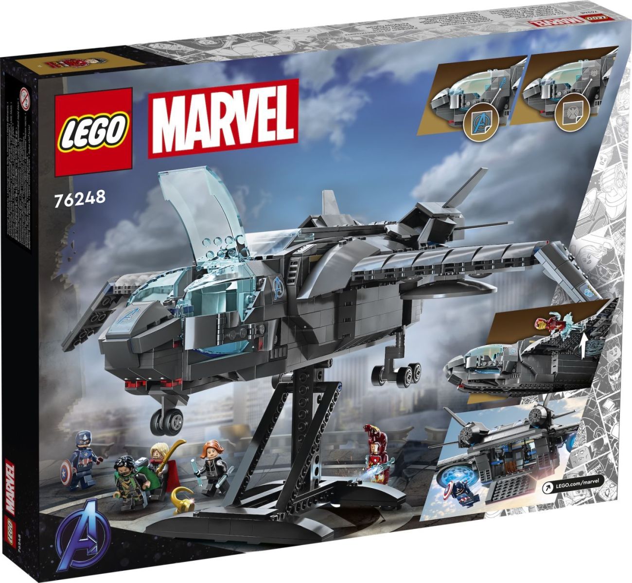 Ein weiteres Set unter den LEGO Marvel 2023 Neuheiten, welches ebenfalls das “Infinity Saga”-Logo tragen wird, ist der 76248 Quinjet der Avengers. Dabei handelt es sich um ein Set zur Schlacht von New York mit Neuauflagen der Figuren der originalen Avengers Iron Man, Captain America, Thor und Black Widow. Außerdem ist auch Loki enthalten.