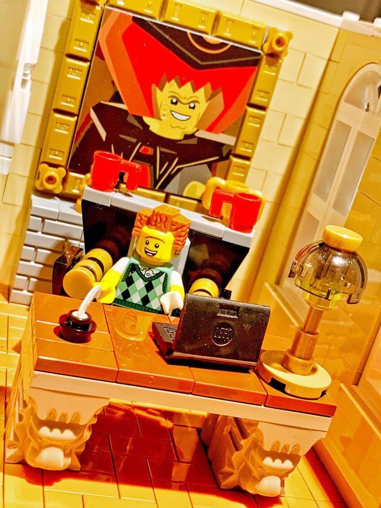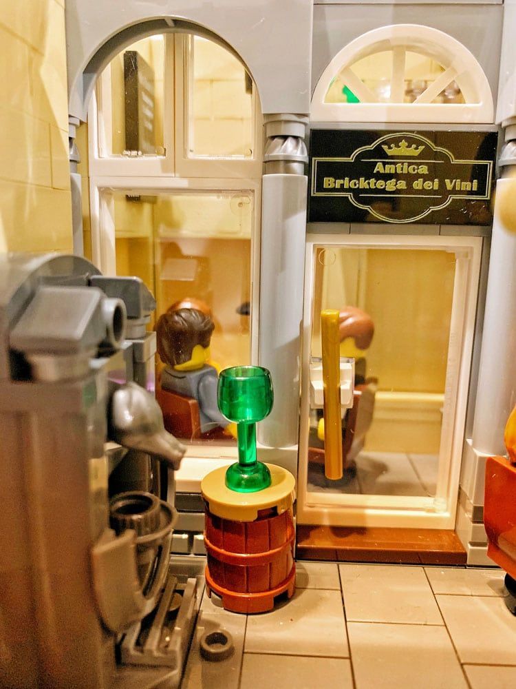 Achtet bitte einmal auf die zahlreichen kleinen Schilder mit den witzigen Beschriftungen. Die Drucke haben die Super Brick Brothers gemacht.