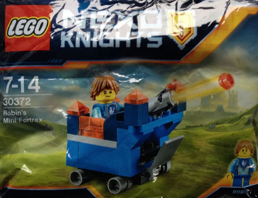 Mit Robin’s Mini Fortrex (30372) ist nun ein weiteres LEGO® Nexo Knights Polybag aufgetaucht, welches ebenfalls eine Minifigur („Robin“) der neuen Produktlinie enthält sowie eine Miniatur-Version der Rollenden Festung. Details zu Release sind nicht bekannt.