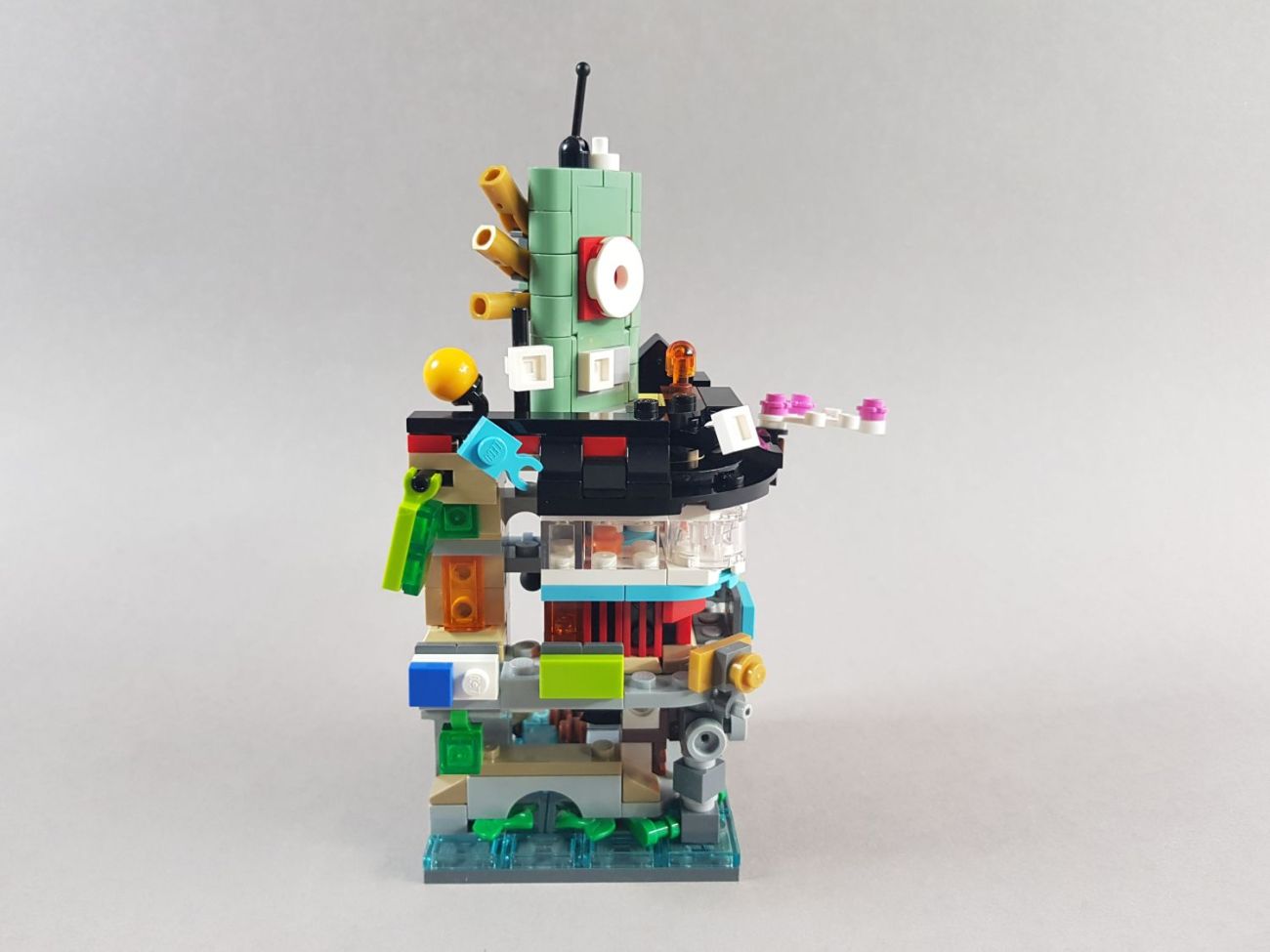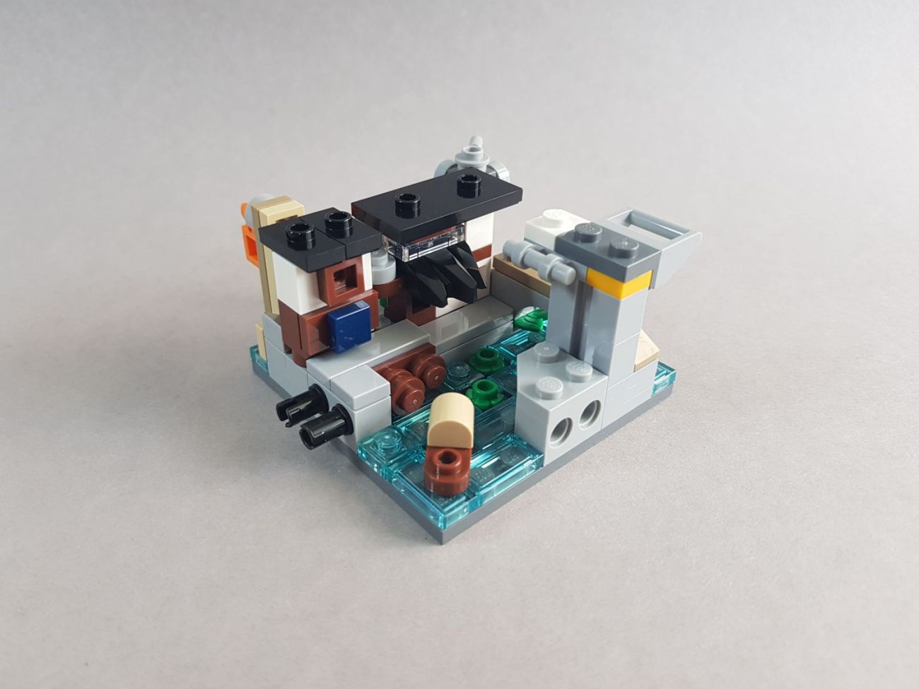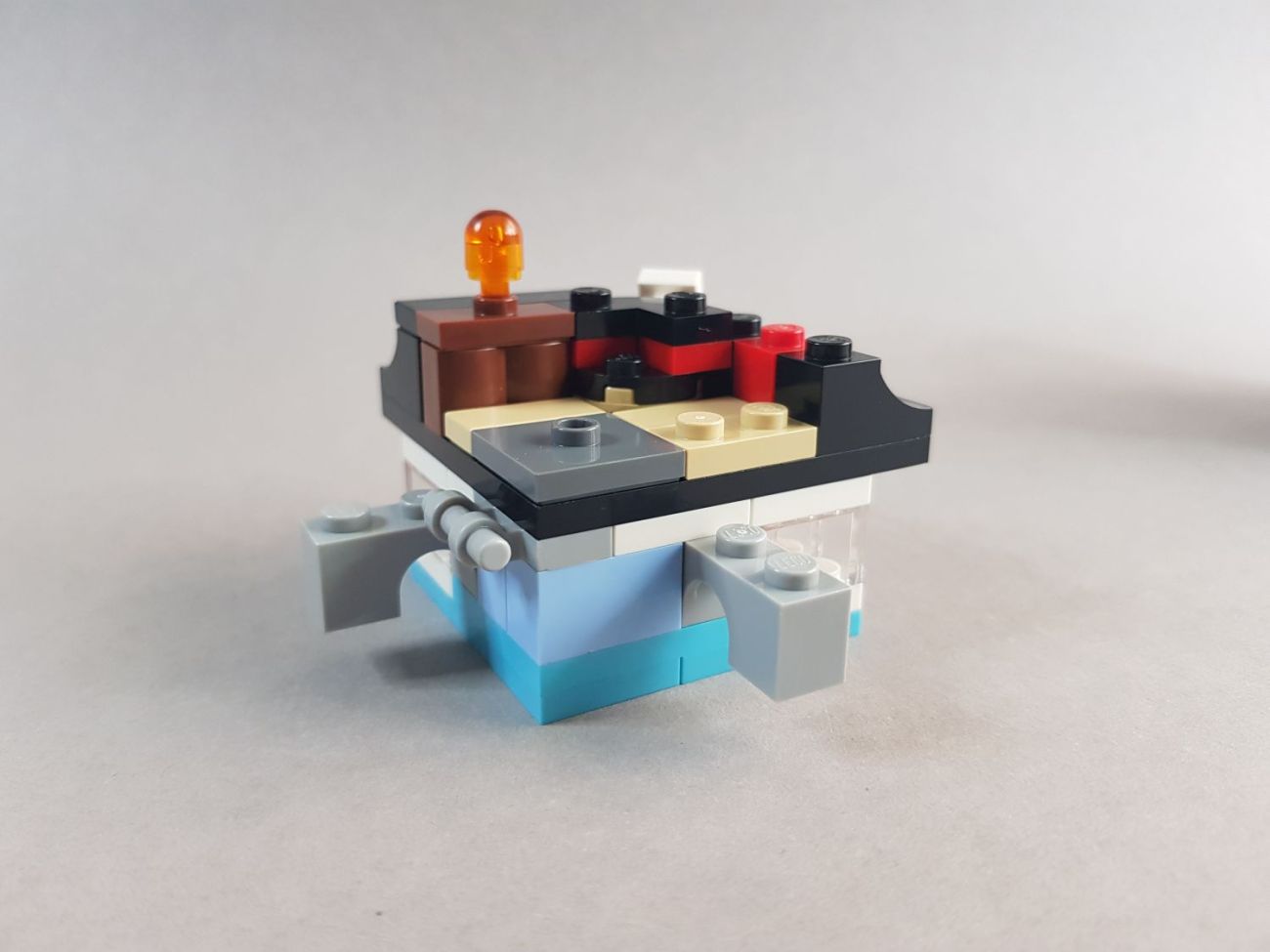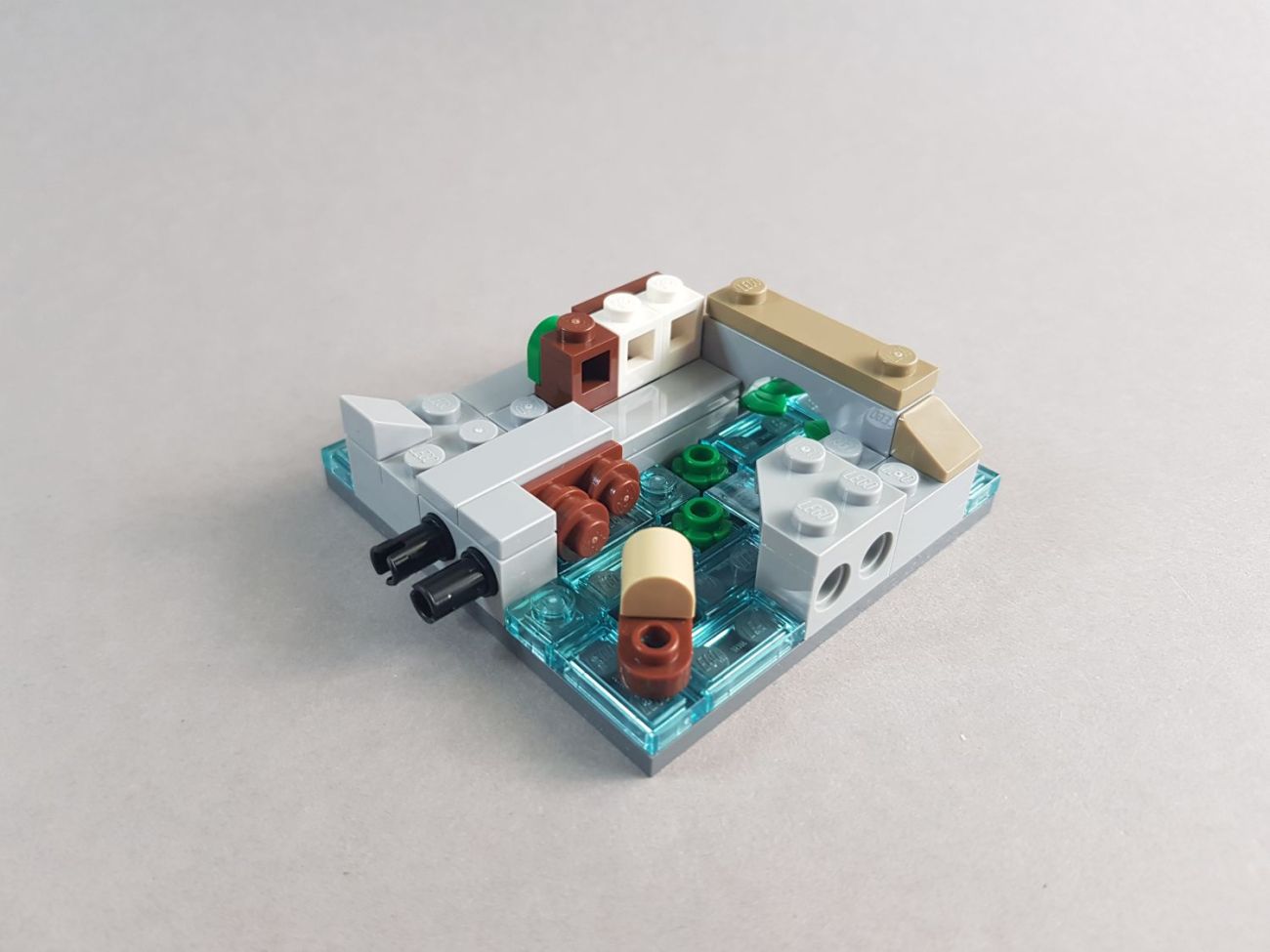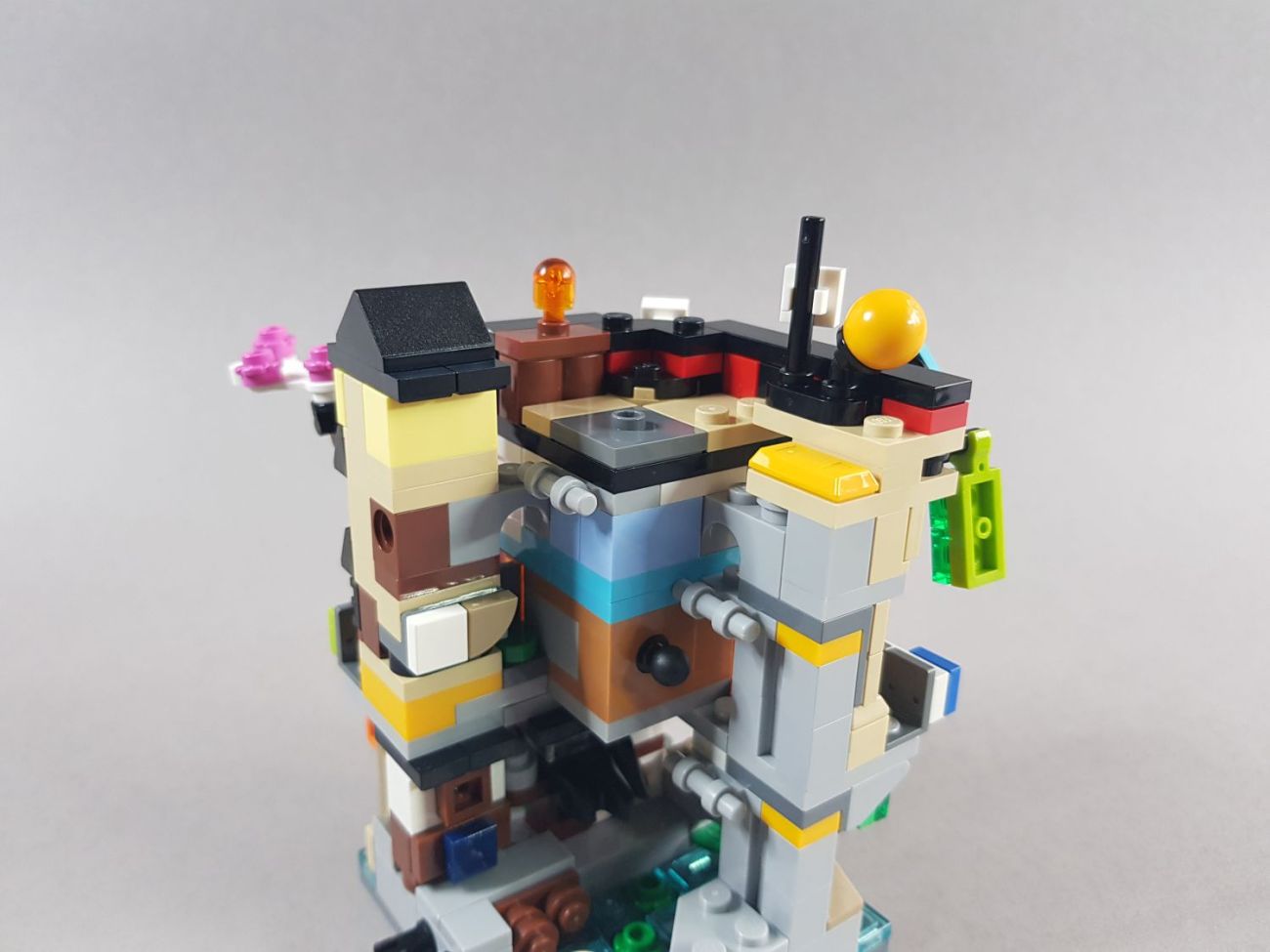 Der Aufbau ist sehr einfach und schnell gemacht. Unter den 339 LEGO Teilen sind nicht besonders viele große Teile dabei und mir sind auch keine exklusiven Teile aufgefallen. Ganz interessant fand ich auch die kleine 1×1 Fliese mit dem Sushi, welche an der Stelle verbaut ist, wo das Krabbenrestaurant im Originalmodell ist.