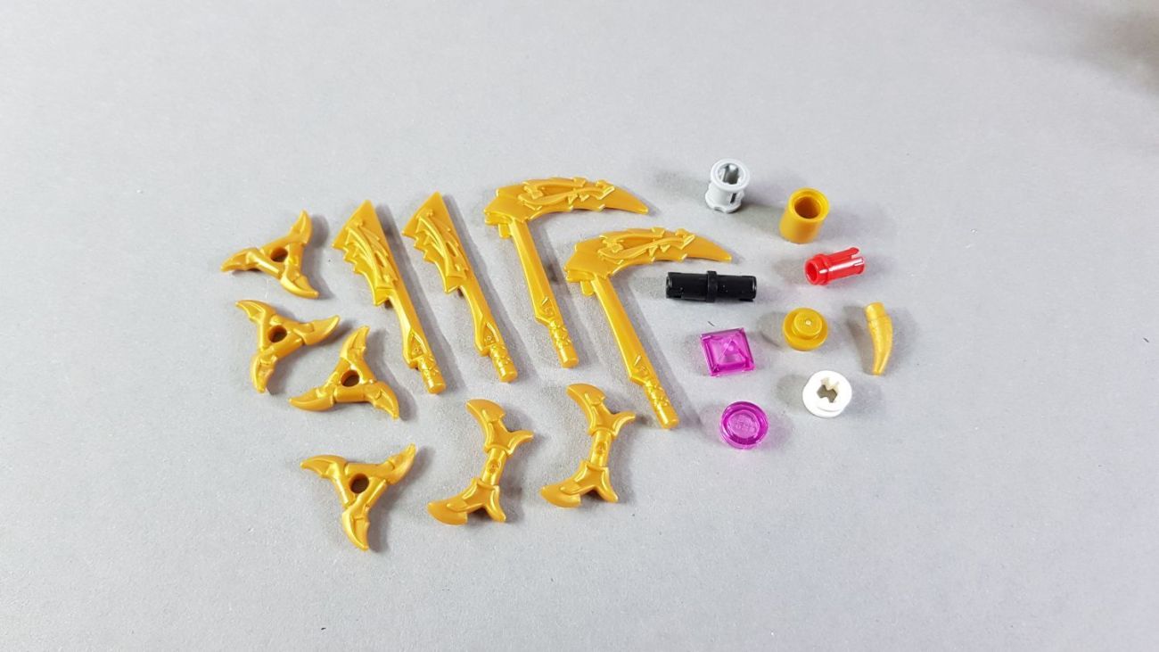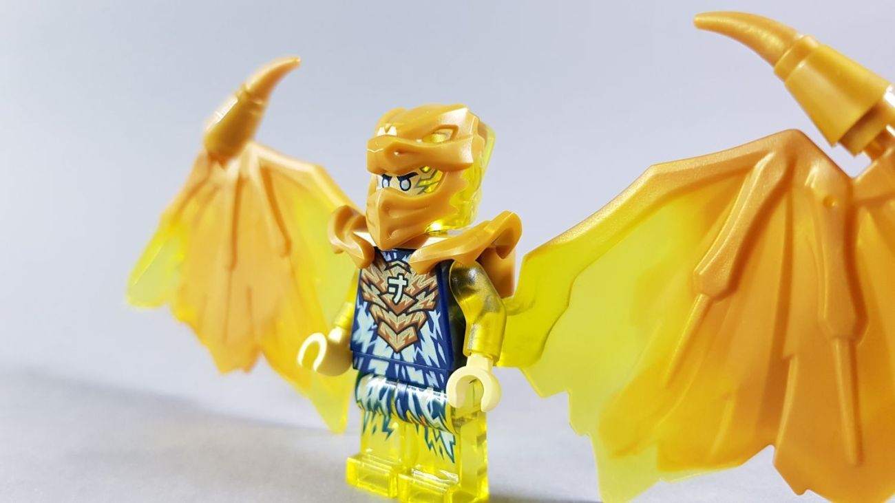 Die Golddrachen-Jay Minifigur ist einfach das Highlight in diesem Set. Farblich ist er wie die anderen super gelungen, der dunkelblaue Torso passt zu den gelb-transparenten Elementen und werden durch die goldenen Elemente weiter aufgewertet. Die blauen Technic Pins stören auch nicht so sehr wie bei Cole und Kai, da blau schon immer seine Farbe war und auch zum Torso passt.