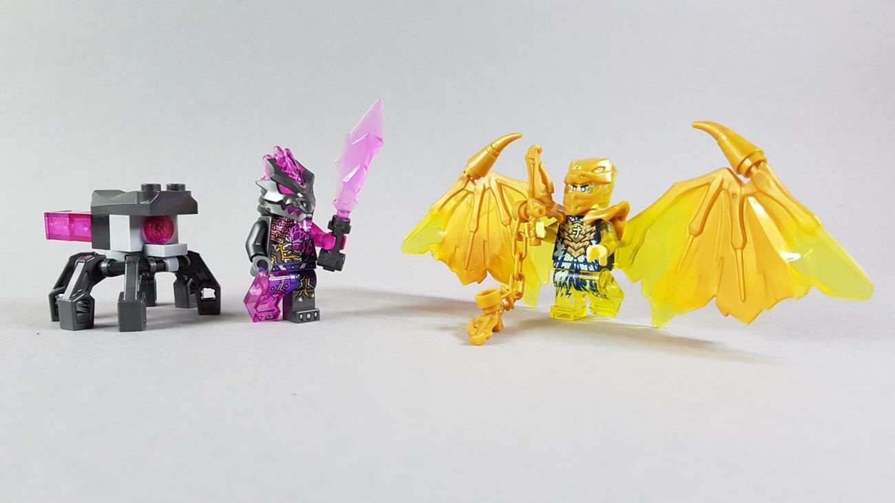 In dem Set gibt es zwei LEGO Ninjago Minifiguren: einen Vengestone Krieger und Golddrachen-Jay. Dazu kommt noch eine Kristallspinne, welche auch in der Serie aufgetaucht ist. Die Auswahl an Figuren ist in dem Set sehr gut gelungen. Den Vengestone Krieger und die Kristallspinne kann jeder Ninjago Sammler gut gebrauchen, auch weil es in keinem anderen Set eine Kristallspinne gibt. Golddrachen-Jay ist ebenfalls exklusiv nur in diesem Set enthalten und ist auf Bricklink für ca. 9 Euro verfügbar, da lohnt sich das Set dann doch etwas mehr.