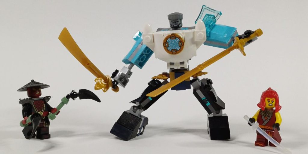 Wenn ich mir die drei Mechs aus den Battle Packs für zehn Euro anschaue, ist Kais Mech eindeutig mein Favorit. Die Proportionen sind hier einfach am besten umgesetzt worden, er hat das passende Cockpit Element und auch das Design als Drachen Mech gefällt mir hier am meisten. Was die Minifiguren angeht, kommt aber leider keiner an das erste Battle Pack von Jay dran, da er hier eine Figur mehr als die anderen beiden hat. Außerdem finde ich die Minifiguren Auswahl von allen drei Sets insgesamt sehr gut durchdacht, da kein Charakter doppelt vorkommt. Ob wir als Nächstes einen Cole Mech mit Arin oder Nya bekommen?