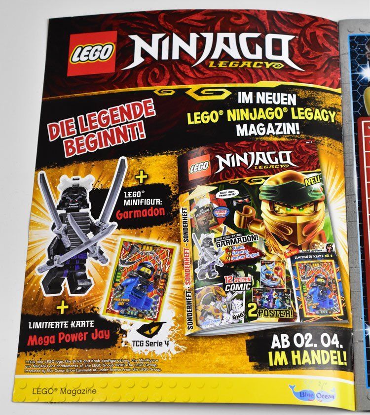 Am 2. April 2019 kommt das erste LEGO Ninjago Legacy Sonderheft in den Handel. Als Extra erwartet euch eine LEGO Garmadon Minifigur mit vier Schwertern, die limitierte Sammelkarte „Mega Power Jay“ aus der Serie 4 sowie zwei Poster im Innenteil des Magazins. Herausgeber des LEGO Ninjago Legacy Sonderhefts ist der Stuttgarter Blue Ocean Entertainment Verlag.