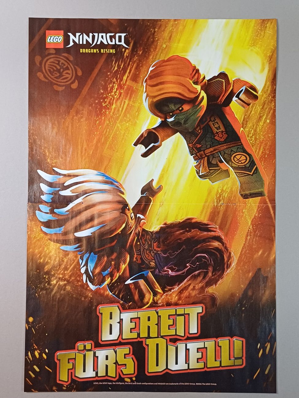 Neben der goldenen Karte von Kletter Lloyd haben wir auch noch zwei Poster, eines von Kletter Kai im Niemandsraum und eines von dem Turnier mit einem Kampf zwischen Lloyd und Cynder. Letzteres gefällt mir aufgrund des Artworks besonders gut.