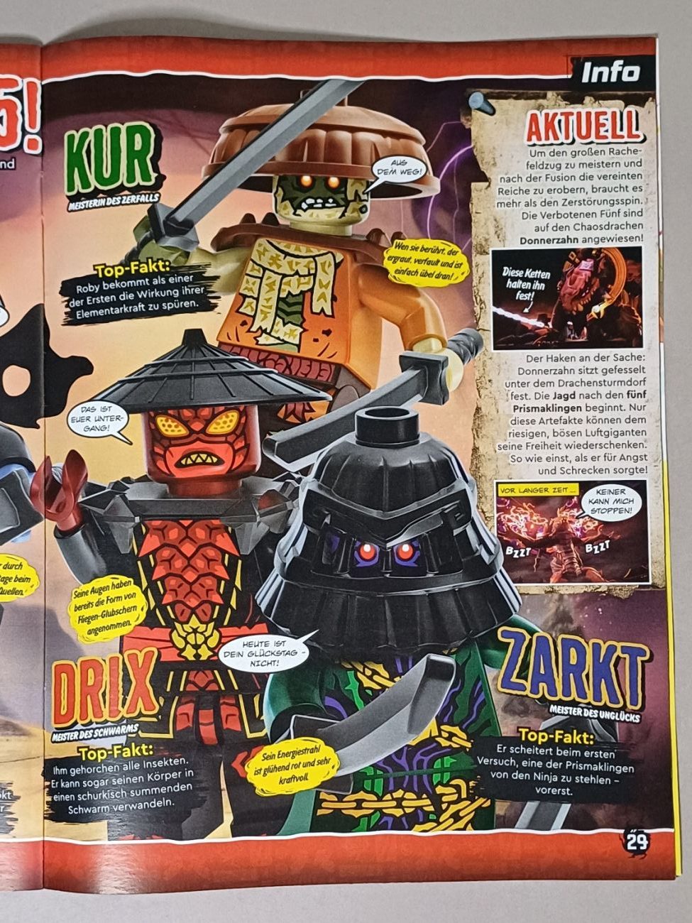 Ich kaufe so ein Heft nur, wenn die Figur zu einem vorhandenen bzw zukünftig zum Kauf anstehenden Sets passt. Mindestens einer der Ninjas ist in so einem Set dabei. Daher freue ich mich mehr über Schurken und deren Gehilfen als Zugabe.