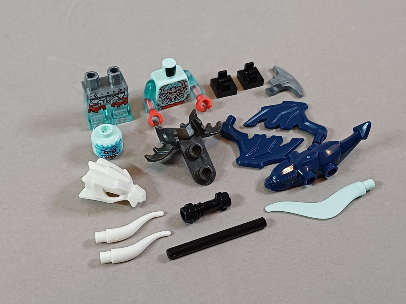 Tyr, der Anführer der Geisterdrachenkrieger unterscheidet sich eigentlich nur in einem besonderen Detail zu den anderen Geisterdrachen und zwar seinem weißen Drachenhelm. Als die Drachenkrieger noch keine Geister waren, hatte Tyr einfach nur längere Hörner, was mit dem weißen Drachenhelm eine deutliche Verbesserung ist. Der Rest der Figur ist identisch zu den anderen Geisterdrachen. Wie in Ausgabe 131 im August finde ich die Geisterdrachen sehr cool, vor allem wegen den vielen transparenten Minifigur-Teilen und auch den coolen, neuen Elementen.