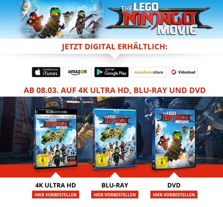 LEGO Ninjago Movie war in 2017 der zweite große LEGO Animationsfilm. Nach dem Kinostart im September steht nun im März 2018 die Auswertung auf DVD bzw. BluRay und VOD (Video on Demand) auf dem Plan.