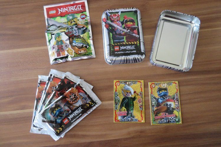 Inhalt: 5x Booster, 1x Minifigur, LE11 Sammler der LEGO Ninjago Trading Card Game Serie 3 werden sich sicherlich jede Box kaufen. Der Preis für die Mini-Tins liegt bei 7,99 Euro, für die XXL-Tin-Dose bei 12,99 Euro.