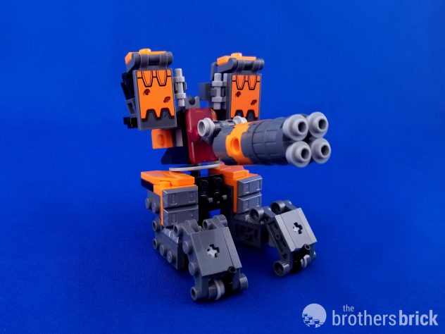 Viel ist zum Aufbau des Kampfroboters nicht zu sagen. 92 Bauschritte sind es insgesamt und es gibt jede Menge kleine Teile, die es zusammenzusetzen gilt. Ich habe rund 20 Minuten für den Zusammenbau benötigt. Brandneue Elemente konnte ich nicht entdecken, allerdings haben die Designer in Billund einige relativ neue Teile verwendet, die es erst seit diesem Jahr gibt. Ein Beispiel ist 1×1 Bracket in Light Bluish Gray. Das Teil fand bislang nur in wenigen Sets Verwendung, unter anderem im LEGO Ideas Voltron (21311) oder im LEGO Harry Potter Hogwarts Castle (71043).