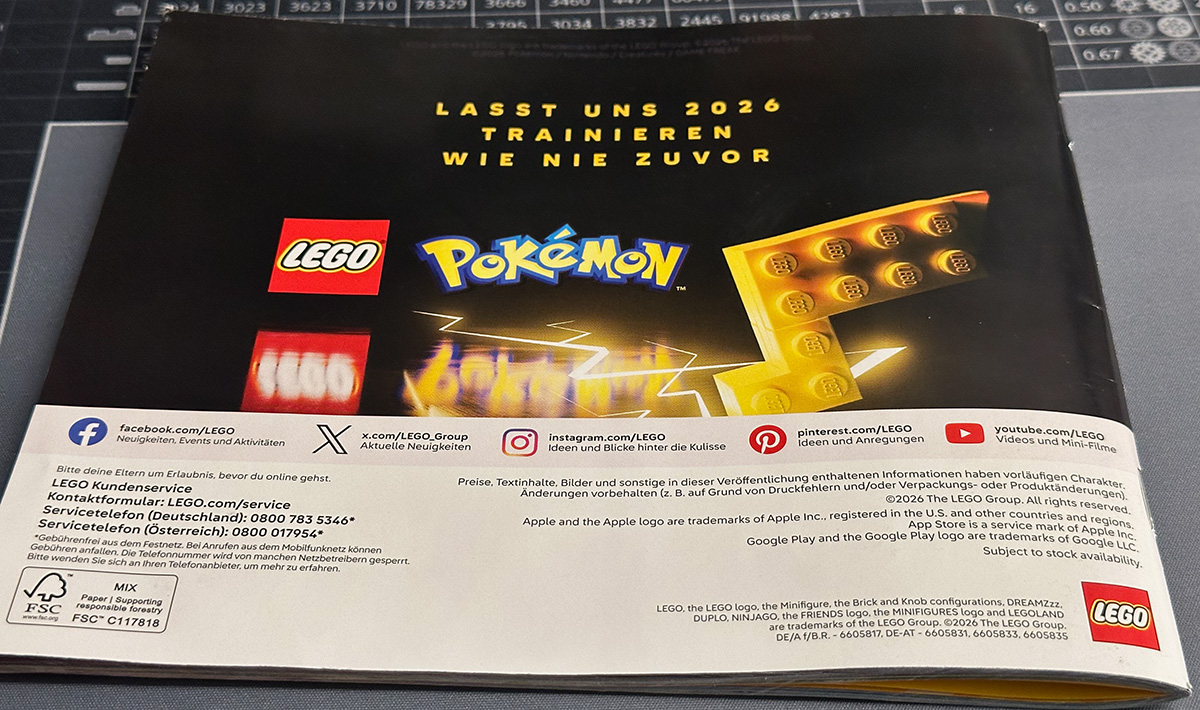Im neuen LEGO Katalog Januar bis Juni 2026 gibt es neben den neuen zahlreichen Set-Neuheiten aus den aktuellen Themenreihen auch einen Teaser zu LEGO Pokemon. Mitte März kommenden Jahres sollen die ersten Sets der neuen Themenreihe beim dänischen Spielwarenhersteller erhältlich sein.