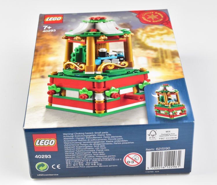 LEGO Seasonal 40293 Weihnachtskarussell im ReviewLEGO Seasonal 40293 Weihnachtskarussell im ReviewDas Weihnachtskarussell besteht aus 251 Teilen, diese sind in drei Beuteln verpackt. Der Verpackung liegt noch eine grüne 8×8 Sockelplatte bei sowie eine 48 Seiten umfassende Bauanleitung. Auffällig: Es sind jede Menge goldene Teile dabei, ebenso die relativ neuen grünen Blätter (14x) und die roten Blüten (14x). Neue Elemente konnte ich bei dem Set nicht entdecken.