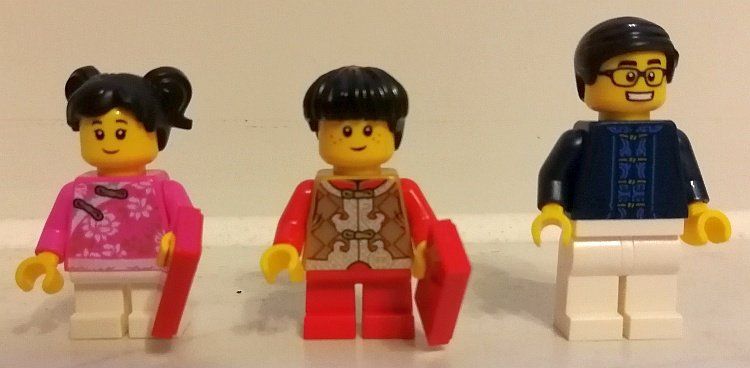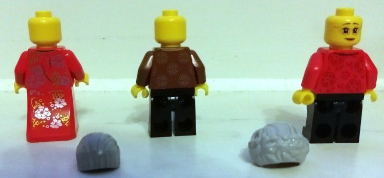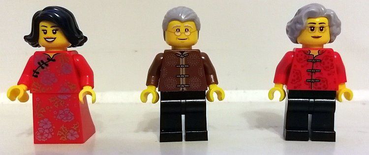 LEGO Seasonal 80101 Chinese New Year’s Eve Dinner im Leser-ReviewDie im Set enthaltenen sechs Figuren passen perfekt ins Set. Die Oma, der Vater und beide Kinder haben zwei Wechselgesichter, wobei der Unterschied bei der Oma kaum erkennbar ist. Sowohl die Mutter als auch der Opa müssen mit einem Gesichtsausdruck vorlieb nehmen. Alle Oberteile sind beidseitig bedruckt – die Hosen hingegen nicht. Lediglich der Rock der Mutter ist wunderschön gestaltet.