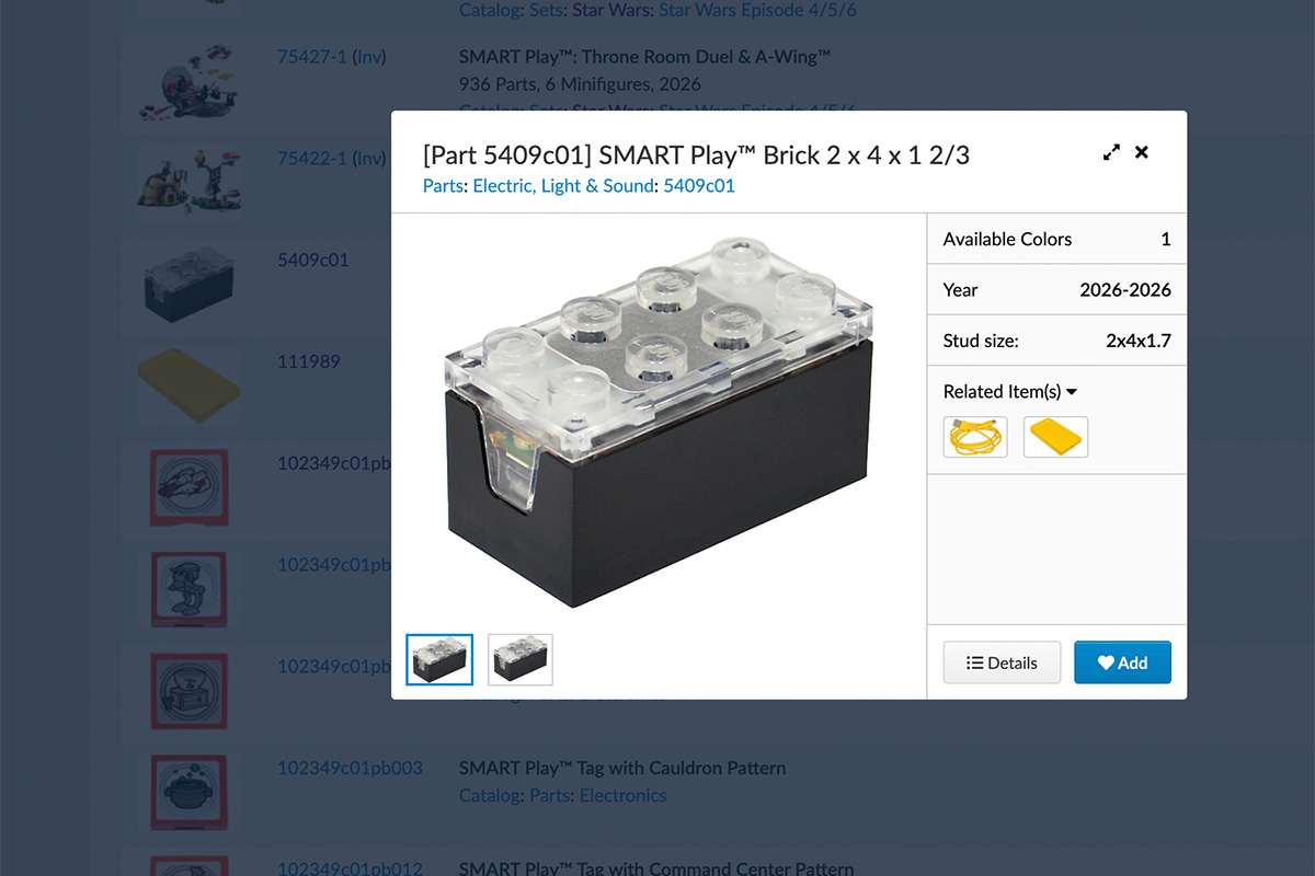 Ein Grund dafür ist, dass die verschiedenen Smart Play Komponenten mittlerweile anders kategorisiert wurden und auf BrickLink nun unter „Electronics“ zu finden sind, wo bereits auch die Spiel-Tags von LEGO Dimensions oder LEGO Super Mario gelistet sind. Zuvor waren die Komponenten noch in der eigenen „LEGO Smart Play“-Kategorie gelistet, die nun aufgelöst wurde.