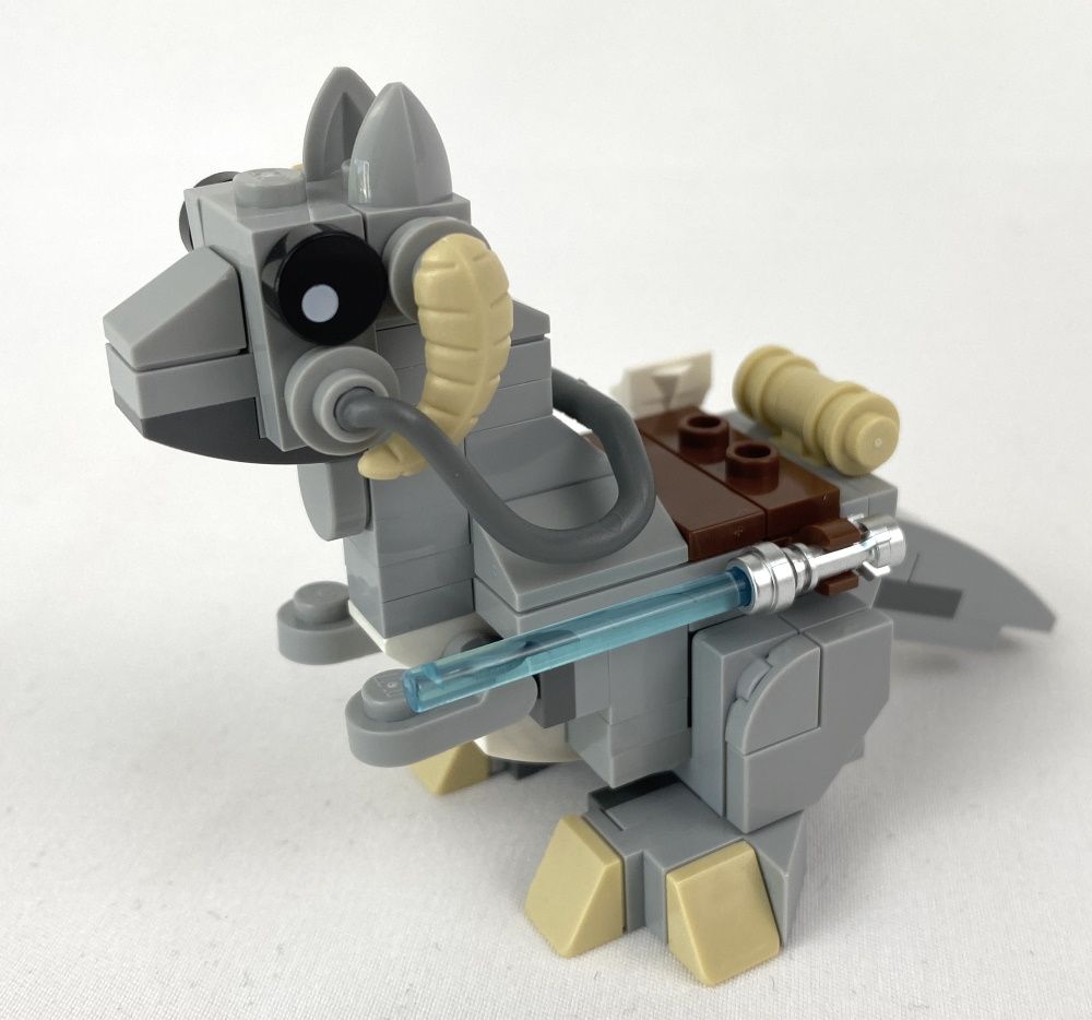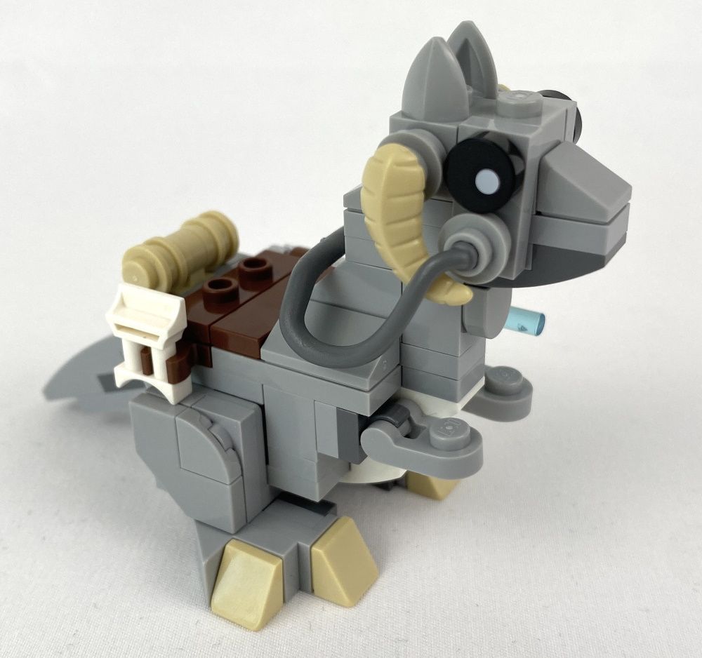 Was hätte Luke auf Hoth ohne sein Tauntaun gemacht? Die Reittiere waren auf dem Eisplaneten sehr nützlich und die einzige Möglichkeit, den Bereich ausserhalb der Basis zu erkunden. Unser Modell ist direkt als Tauntaun zu erkennen, die Hörner und die großen dreihufigen Füße fallen mir als erstes auf. Die Größe ist wie üblich bei den Microfighters nicht genau passend zur Figur, das Tier ist etwas zu groß im Vergleich zu einer Minifig. Das sollte aber nicht weiter stören, denn der Spielwert ist trotzdem vorhanden. Luke kann sein Fernglas und sein Laserschwert am Sattel befestigen und das Tier über Zügel lenken.