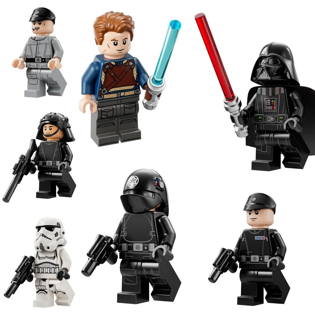 Zu den Minifiguren: Wir bekommen zum 25. Geburtstag der LEGO Star Wars Franchise eine exklusiveCal Kestis Minifigur ergänzt durch Darth Vader, Commander Praji, Imperial Gunner, Imperial Navy Trooper, Crew Member und einen Stormtrooper. Hierbei dürfte Kestis, ein fiktiver Charakter stammend aus dem Videospiel Jedi Survivor, besonders begehrt sein.
