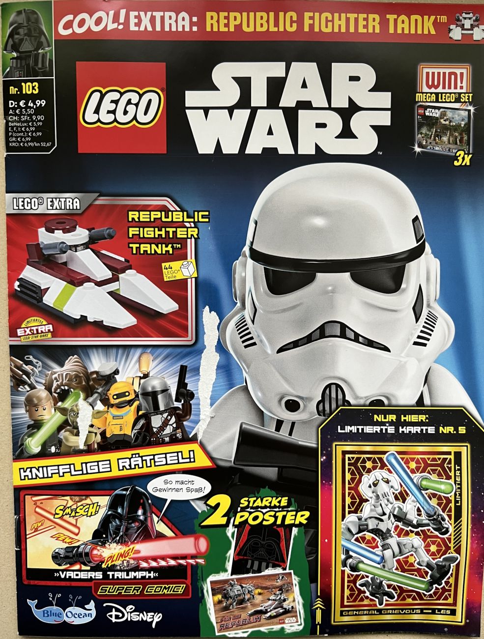 Pünktlich einige Tage vor dem angekündigten Erscheinungsdatum lag das aktuelle LEGO Star Wars Magazin im Briefkasten. Wenn ihr das Blog verfolgt, wusstet ihr schon, welcher Minibuild dieses Mal dabei sein wird. Die Limited Edition Sammelkarte Nummer 5 zeigt General Grievous und ergänzt eure Sammlung um eine weitere Karte in der nun schon vierten LEGO Star Wars Sammelserie. Was mich zu der Frage bringt: Wer von euch sammelt denn aktiv die Karten der Trading Card Collection? Habt ihr vielleicht schon die vorherigen drei Serien komplett? Schreibt es uns gerne in die Kommentare!