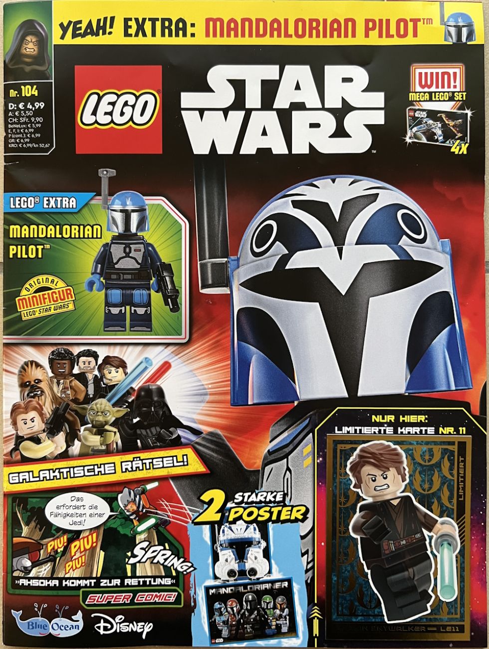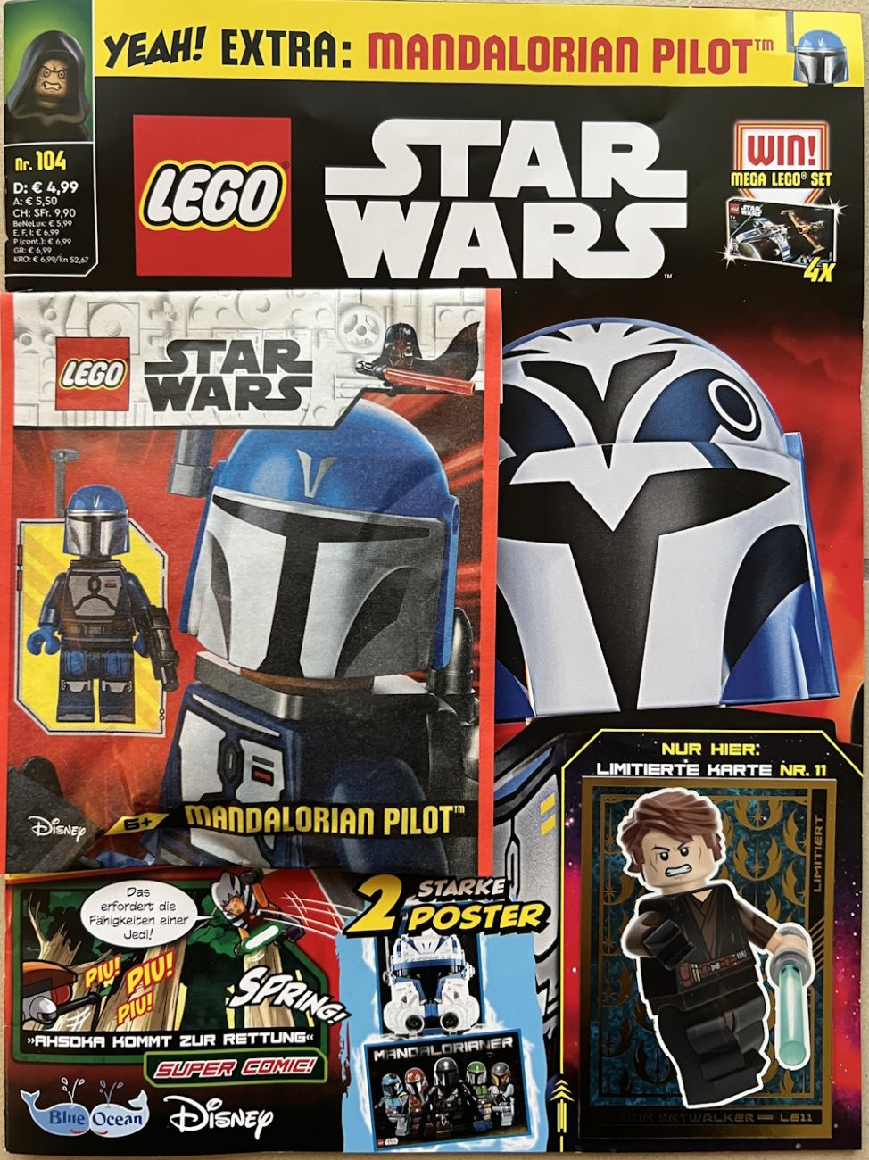 Pünktlich vor Weihnachten brachte der Briefträger die aktuelle Ausgabe des LEGO Star Wars Magazin zu mir nach Hause. Es ist damit das zweite Heft im Dezember, nach dem Heft Nummer 103 zu Beginn des Monats. Wie erwartet klebt auf dem Titel eine Tüte mit dem Mandalorian Pilot und die obligatorische limited Edition Sammelkarte. Diesmal gibt uns Anakin Skywalker im schwarzen Outift die Ehre, es ist die Karte Nummer 11.